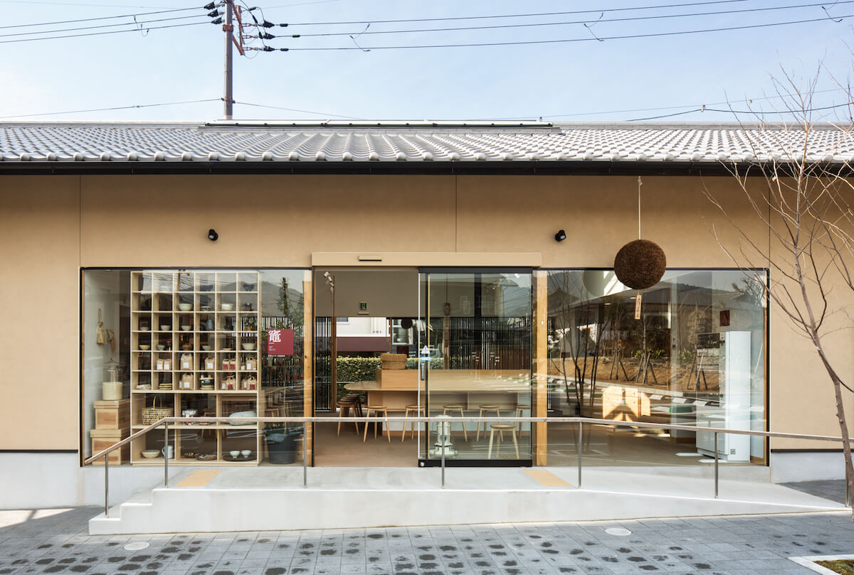 『鹿の舟』は観光案内所の『繭』、食堂とグローサリーの『竈』、ティールームの『囀』の3つの建物から構成。その中でも、奈良の木の存在感を特に感じられるのが『竈』です。