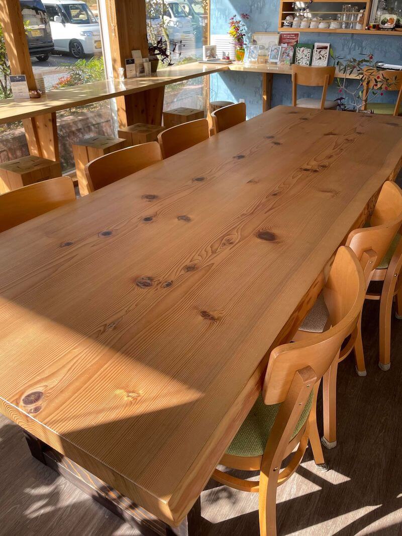 店の建築に吉野杉や吉野桧を使った理由についてオーナーは、「生まれ育った吉野の杉を使って自宅を建てたところとても住み心地が良かったので、店舗を建てるときもその良さを多くの皆さまに知ってほしいと考え、吉野杉や地元の木々をたくさん使用しました」と語っています。