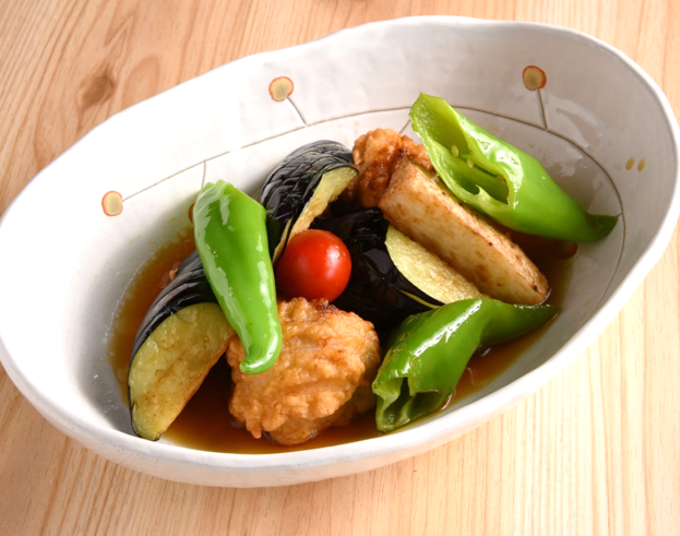 鶏から揚げとナスの揚げびたし(ご飯・お味噌汁・小鉢付)