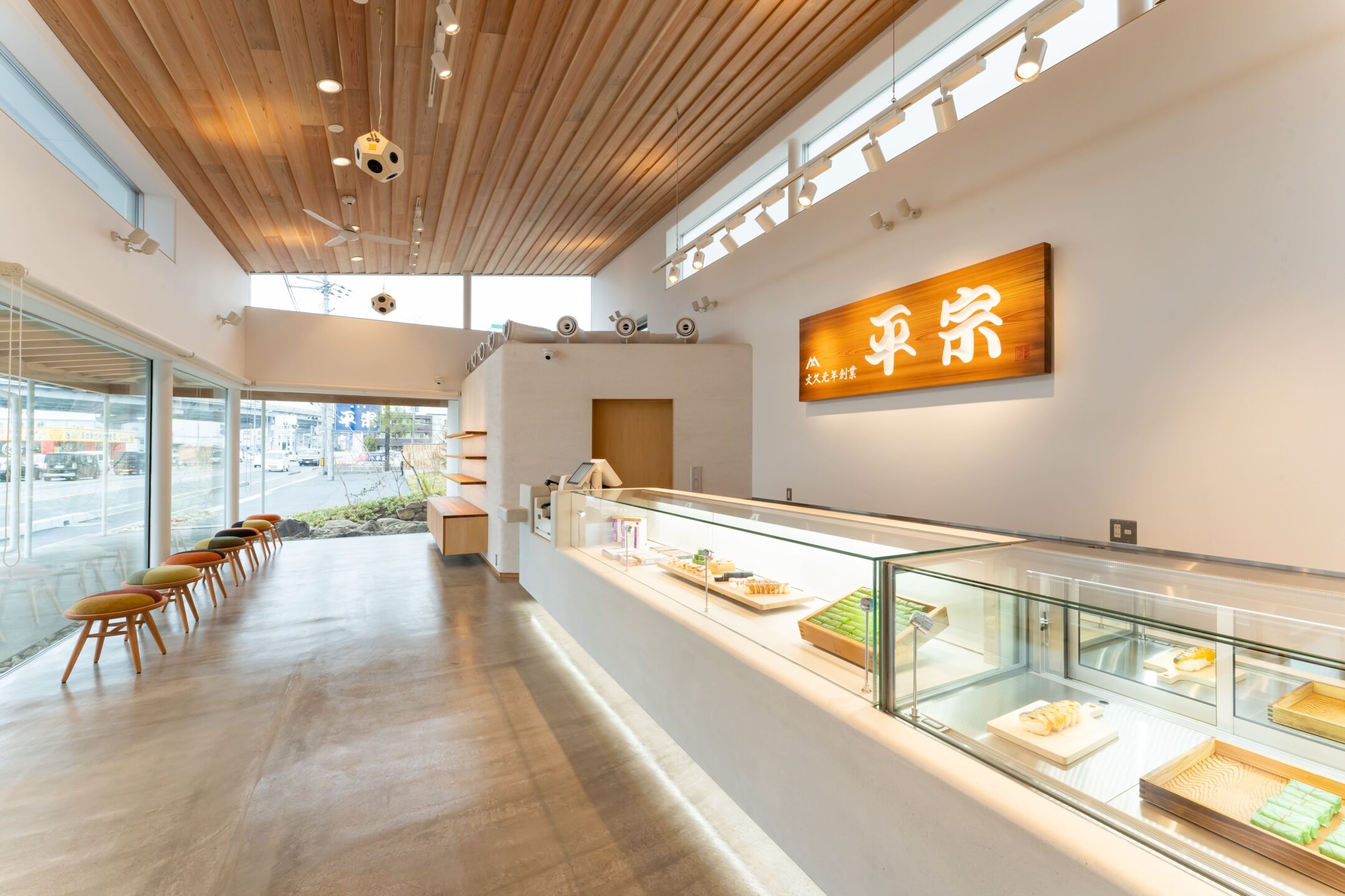 和菓子のケースなどの素材をモルタルにすることで、店内で使われる木のぬくもりをより一層感じられるように工夫されています。「やっぱり木はいいですね」、「いい香りがしますね」、「あたたかみを感じます」など、お客様から声をかけられるそうです。木のやさしさが、人々に安心感を与えているのかもしれません。