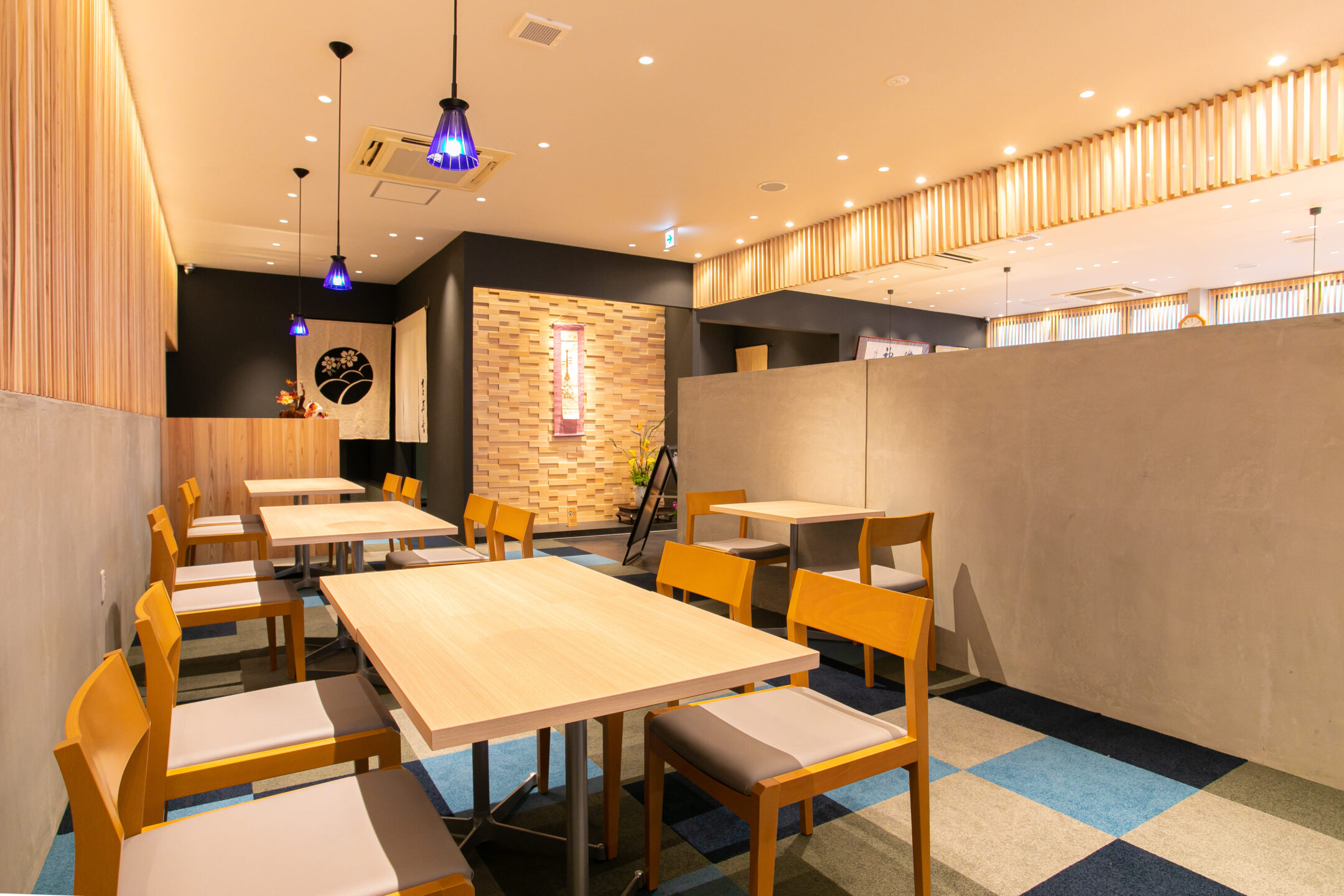 本物の素材ならではの経年変化や、自然の木が作り出す魅力に溢れた店内は、広々としてゆったりくつろげます。「木を見ていると心が安らぐ」というお客様からの声があるのも納得です。