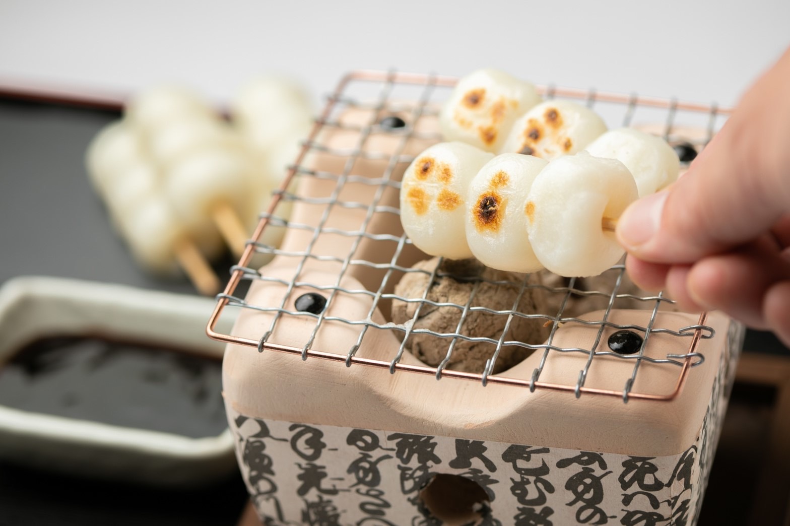 併設されている茶房では、自分で団子を炭で焼きながら、オリジナルのみたらしたれ・つぶあん・きな粉をお好みでつけていただく「焼きみたらし団子」が楽しめます。