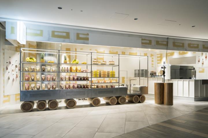 「堀内果実園」では、西吉野から届いたフレッシュな果物のテイクアウトはもちろん、スムージーやサンドウィッチなど、完熟したみずみずしい果物をふんだんに使ったスイーツもおすすめ。吉野スギの丸太を車輪に見立てたトラック型の店内は、農園からお店へと新鮮な果物を届ける貨物車をイメージしているなど、農園直営店ならではのこだわりが詰まっています。また、吉野スギの清々しい香りは、新鮮でジューシーな果物と相性抜群。美味しい果物を味わいながら木の香りを楽しんでみませんか。