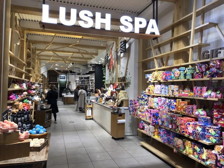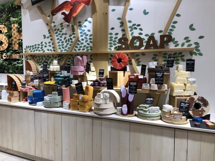 店舗内装には、木の枝を壁に張り巡らせたような特徴的な棚や壁板に吉野スギ・吉野ヒノキの間伐材が利用されており、箱庭には京都の里山の植栽を再現するため、近隣地域で生産された緑化ユニットを設置するなど、環境に配慮しつつ、随所に自然を感じられる趣向がちりばめられています。2階にはスパトリートメントを体験することができる日本では新宿と京都にしかない「LUSH SPA」も併設。木の温もりと癒しの香りが漂う、リラックス空間に足を運んでみてはいかがでしょうか。