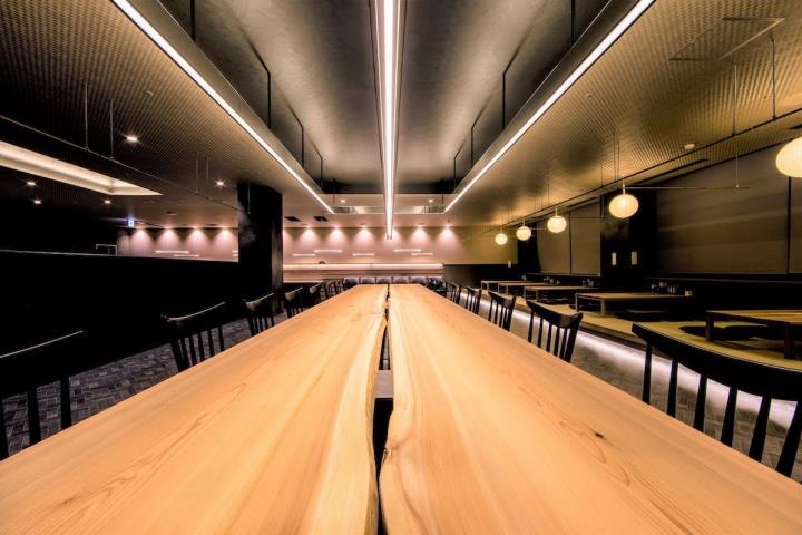 1000坪以上あるという広大な店内は、日本の伝統美である組子格子が特徴的な造りで、時間によって光の差し込み具合が変わることによって、日本の四季や1日の陰翳の移ろいを表現したという、日本の美が感じられる空間です。さらに、長さ6mもある吉野スギの一枚板を使ったレストランのテーブルは迫力満点。エントランスには地元川西市出身のお笑い芸人キングコング・西野亮廣さんによるギャラリーも併設されているなど、1度だけでは物足りず、何度も通いたくなる仕掛けが盛りだくさん。四季折々の風景が感じられるリゾート空間は、疲れた身体だけでなく心も穏やかに和らげてくれるはずです。
