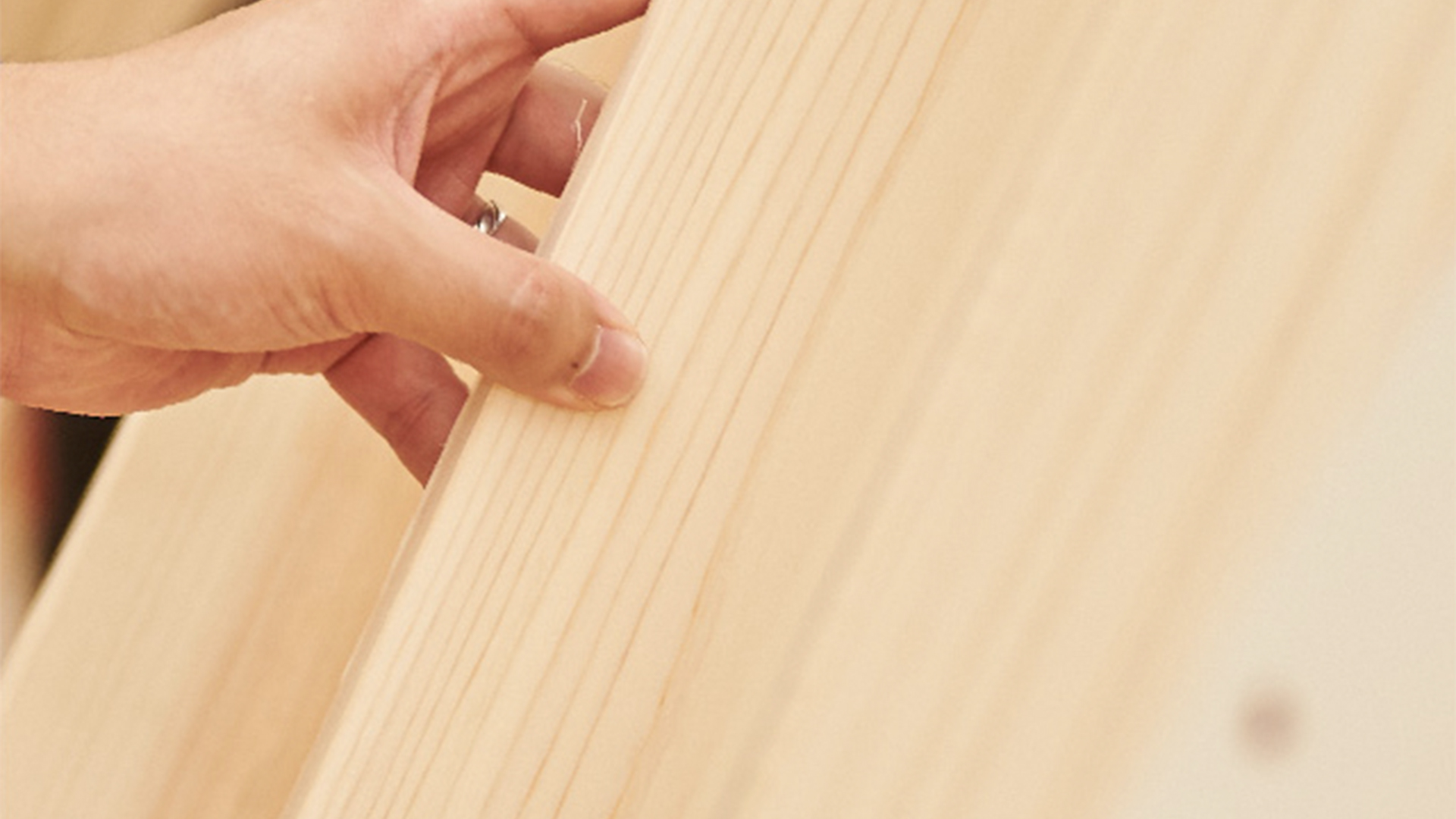 一本の同じ木材でも、切る方向や部位が違うと、異なる木目が現れます。たけのこのように見えることもあれば、少しゆらぎのある直線だったり、波打った曲線ということも。このような木目は、自然が歳月をかけて生み出すデザイン。人の心を落ち着かせ、穏やかにするといわれています。