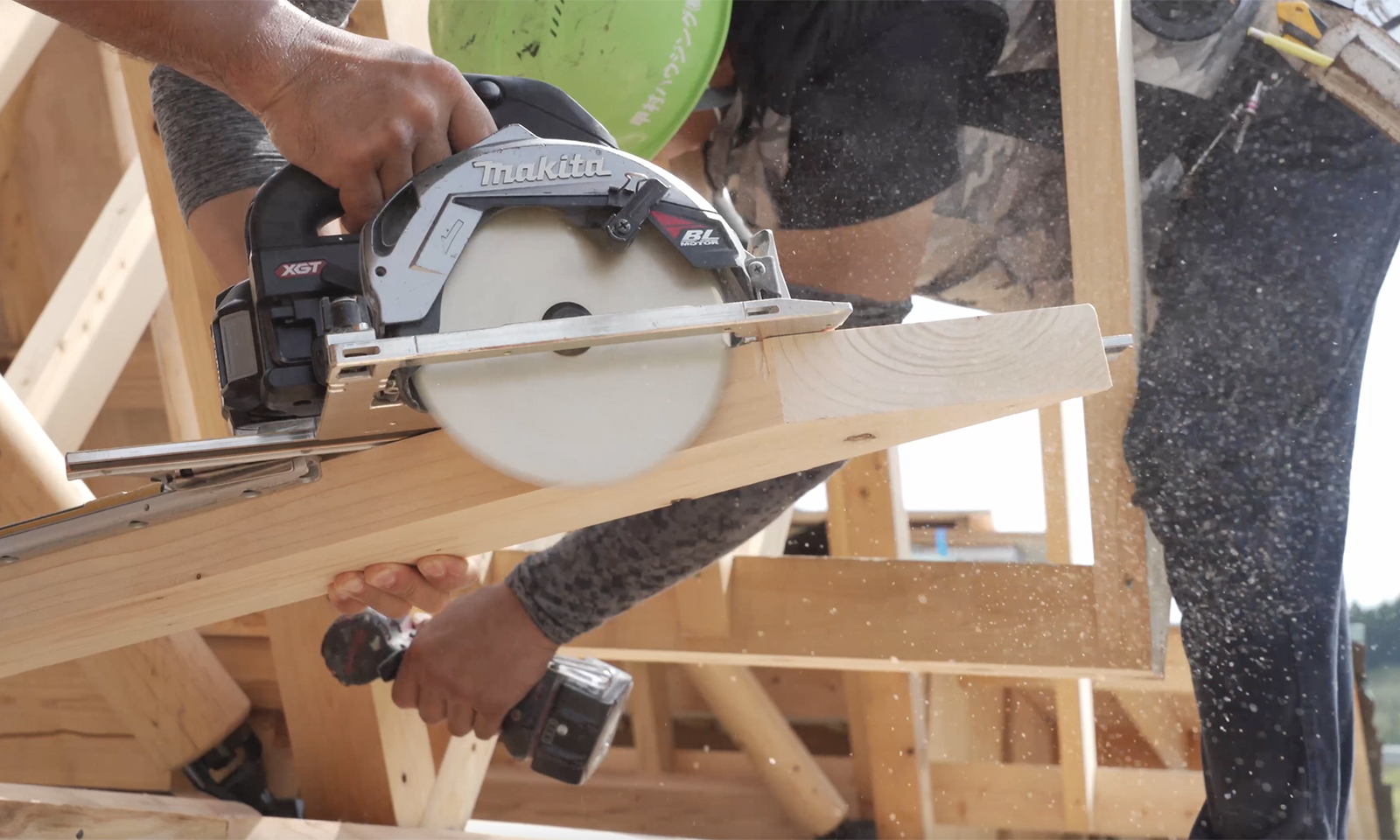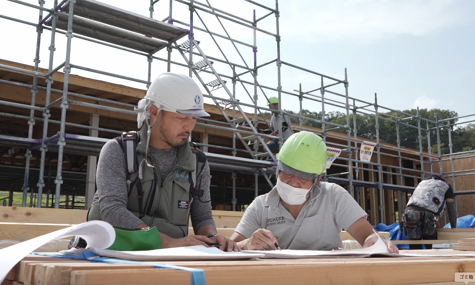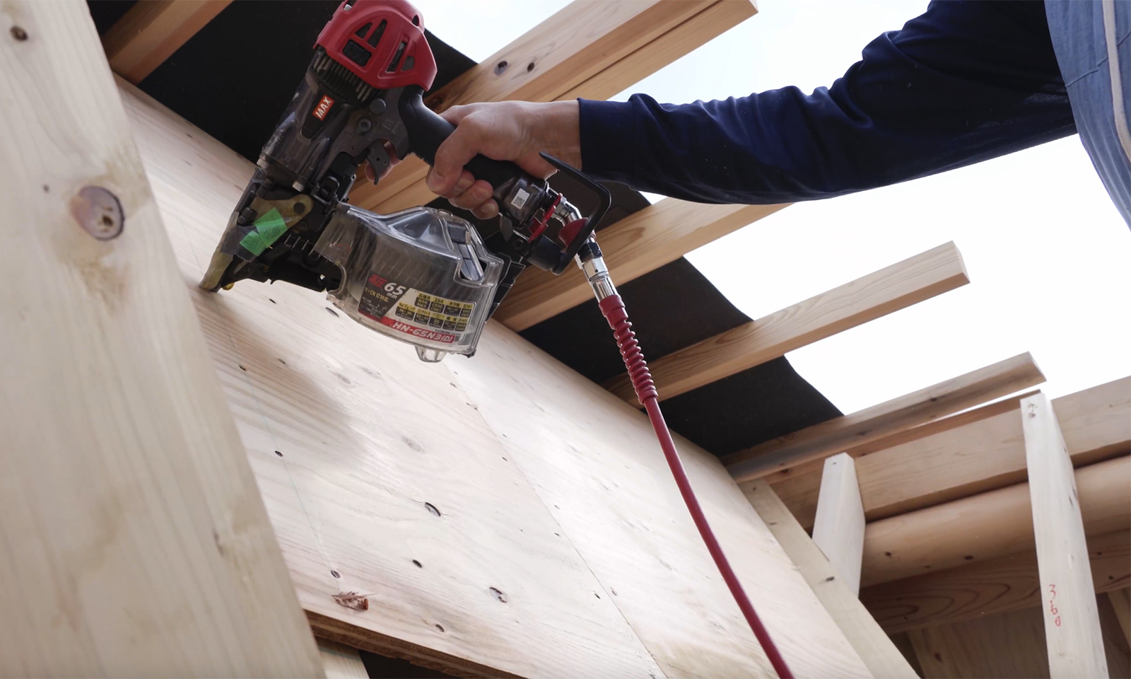 仕上がりをイメージし、工場で加工した木材を使ってどういう順番で組み立てていくと良いかを考えながら施工します。