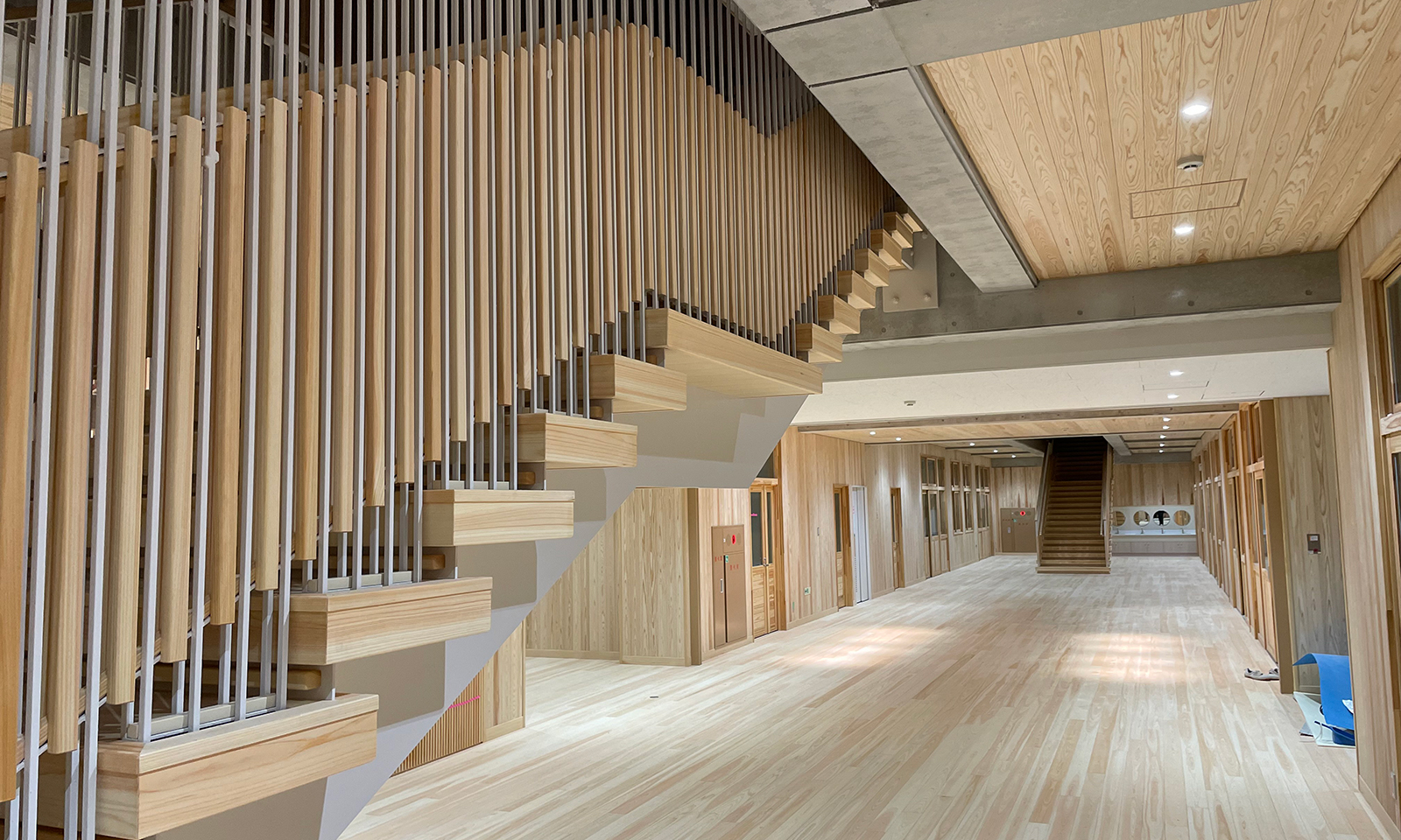 木工事は主にゼネコンなど建設業者がお客様です。奈良県内だけでなく、全国の施設や建物の工事を請け負います。保育園や学校、体育館、文化施設といった公共施設が多いのも特徴です。