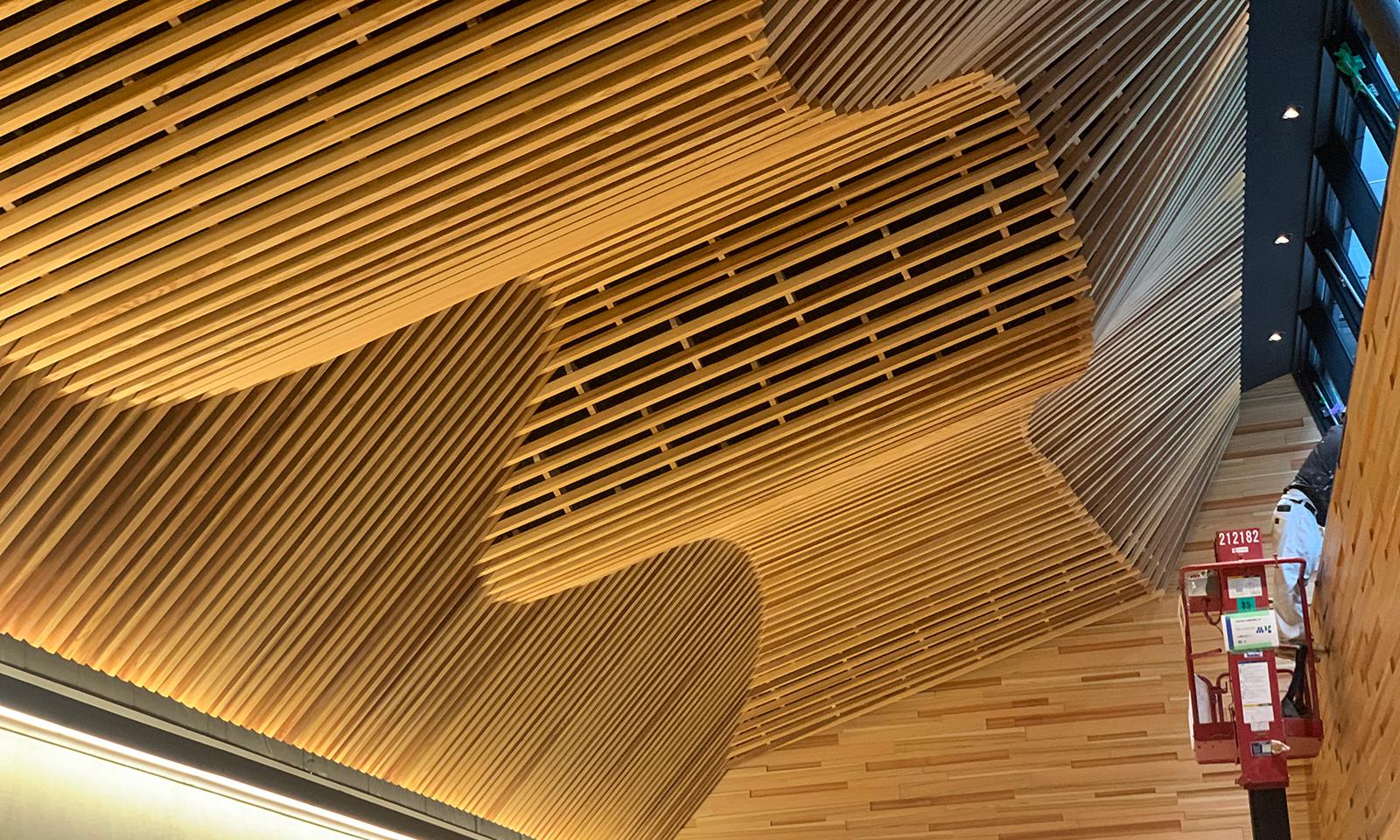 建物を作ったときの一番の喜びというのは、非常に難しい線の図面を形に変えていくという作業をしているので、「どうやってこの建物を作ったの?」、「どうやってこの加工をしたの?」と思ってもらえたときです。木材というのは非常に加工しやすくて簡単な部分もありますが、逆に言うと、非常に難しい部分もある。そういった部分を多くの人に見ていただくことによって、「どうやってやったの?」、「どうなってるいるんだろう?」、「こういうことをやってみたい!」という探究心を持ってもらい、一人ひとりが木に関心を持つ機会を作ることが、わたしたちの仕事の最大の喜びかなと考えています。