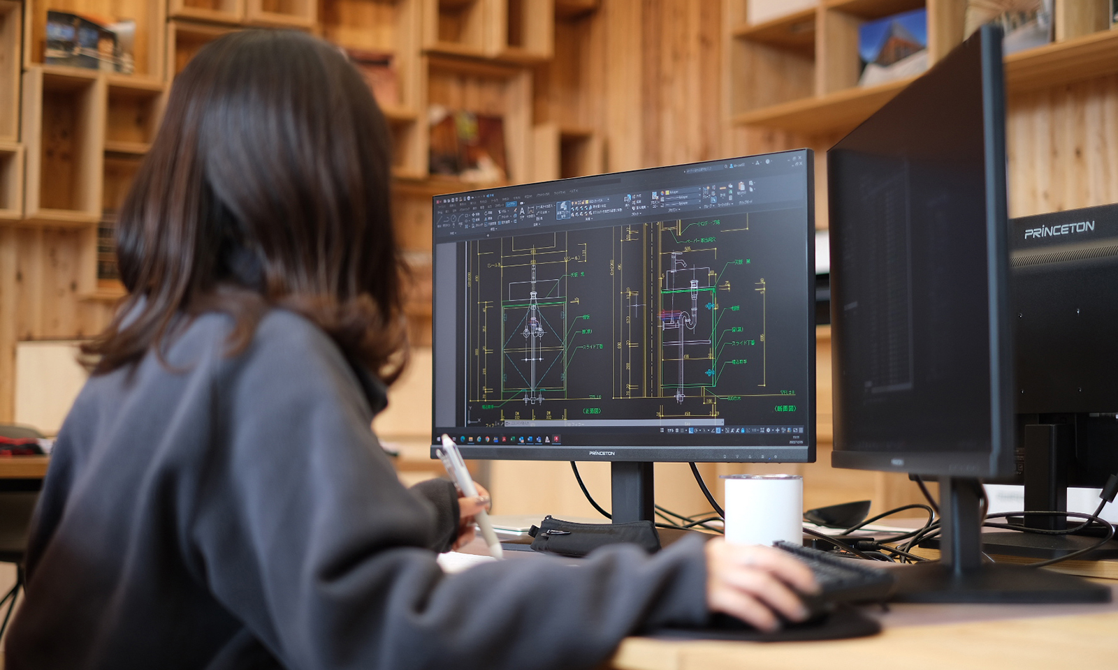 工事に必要となる木材の数量の把握や発注も、CAD(キャド)で作成した図面を見て行うため、誰が見ても分かる図面を作ることが求められます。