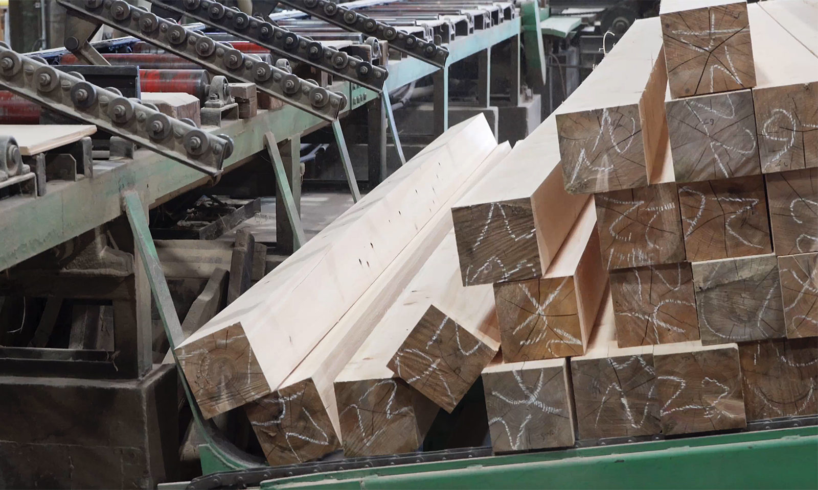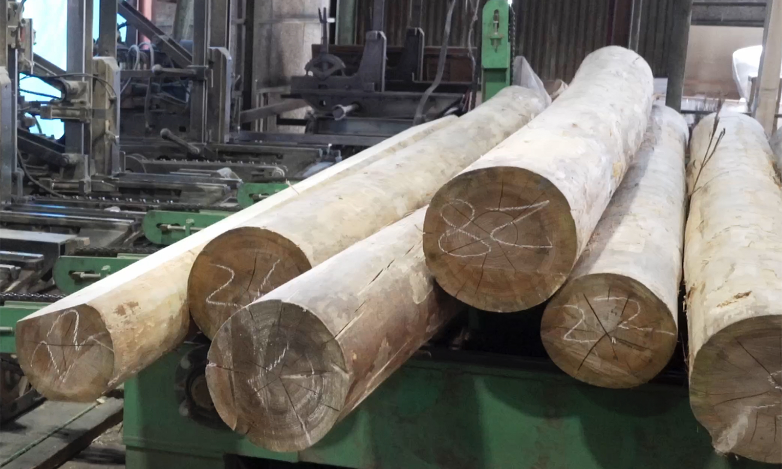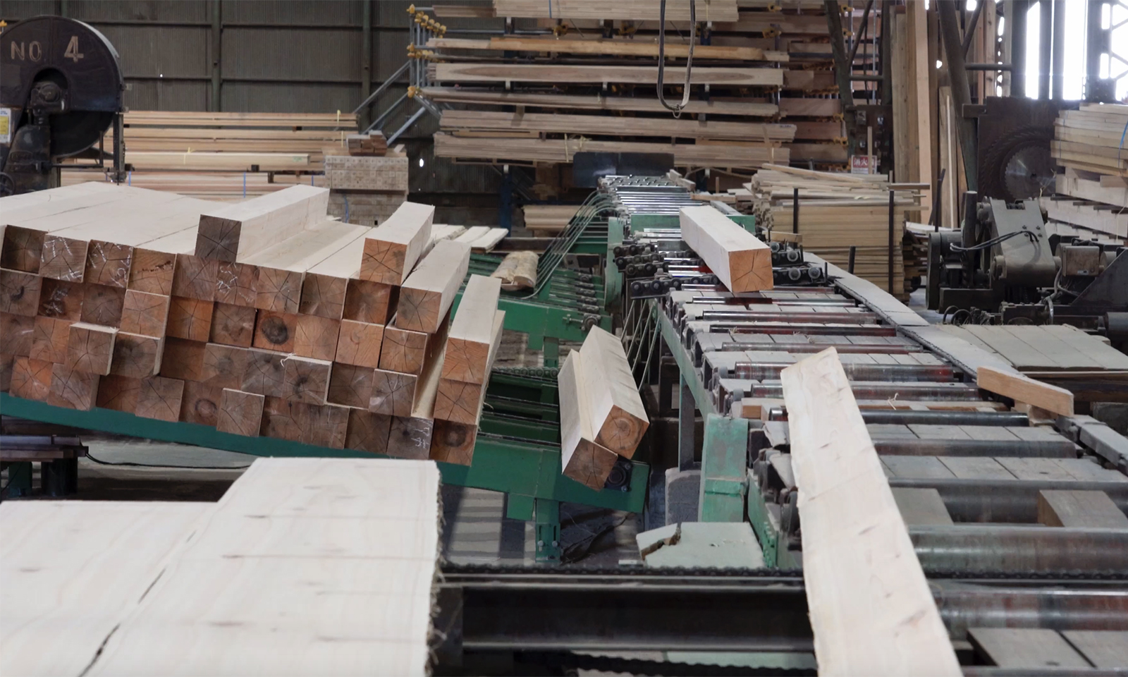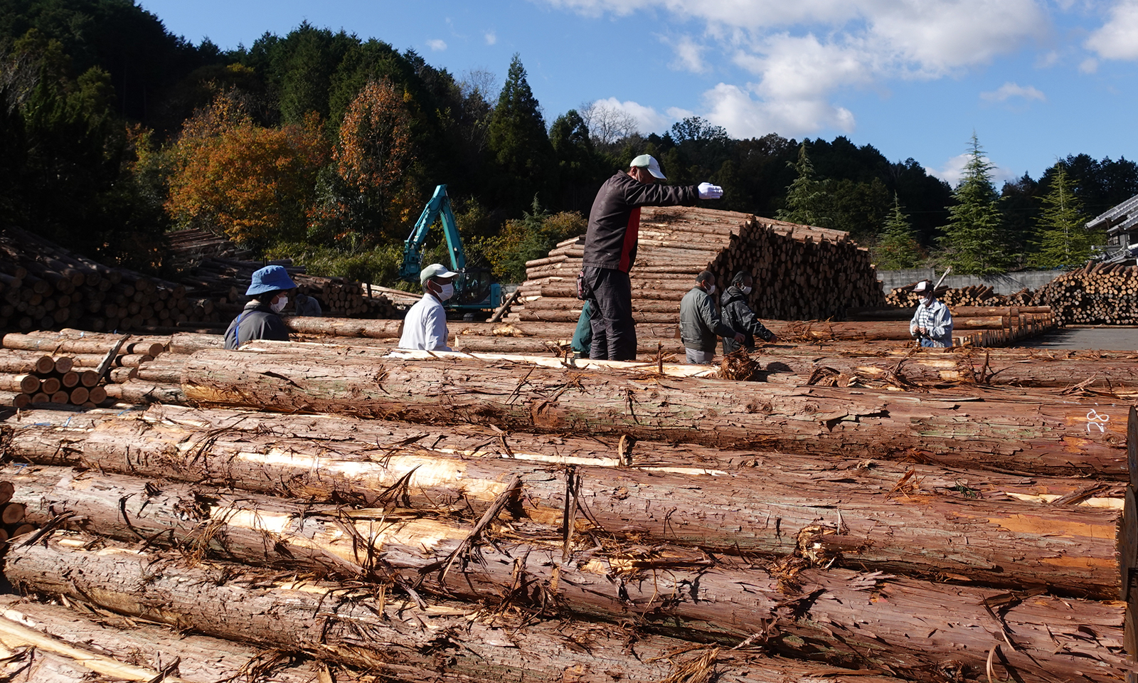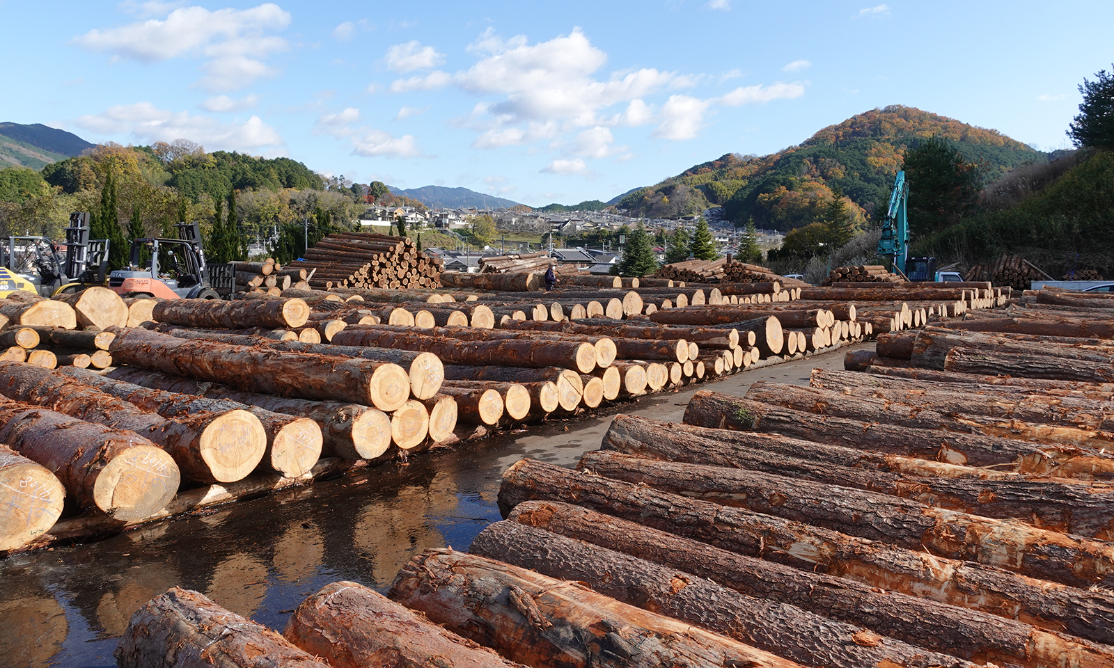 わたしたちは山から伐(き)られてきた丸太・木材、そういったものを工場で製材して世の中に出すことで、建築業界の方々であったり、家具業界であったり、いろんな業種の方々に木材を届ける一番最初のスタートが、わたしたちの担いだと思っております。