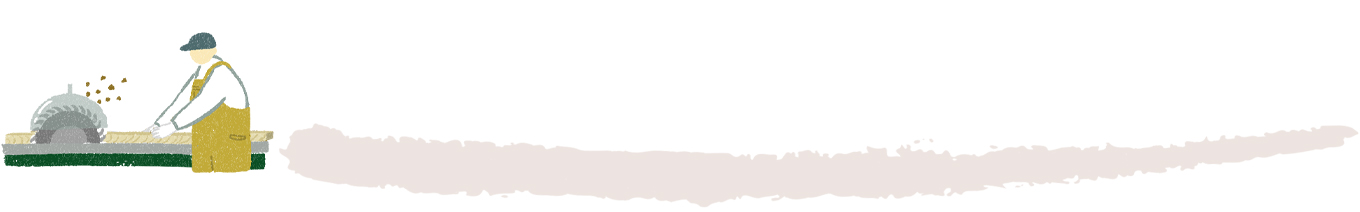 製材とは、山で伐採(ばっさい)された木の丸太をカットして角材や板材に加工する仕事です。