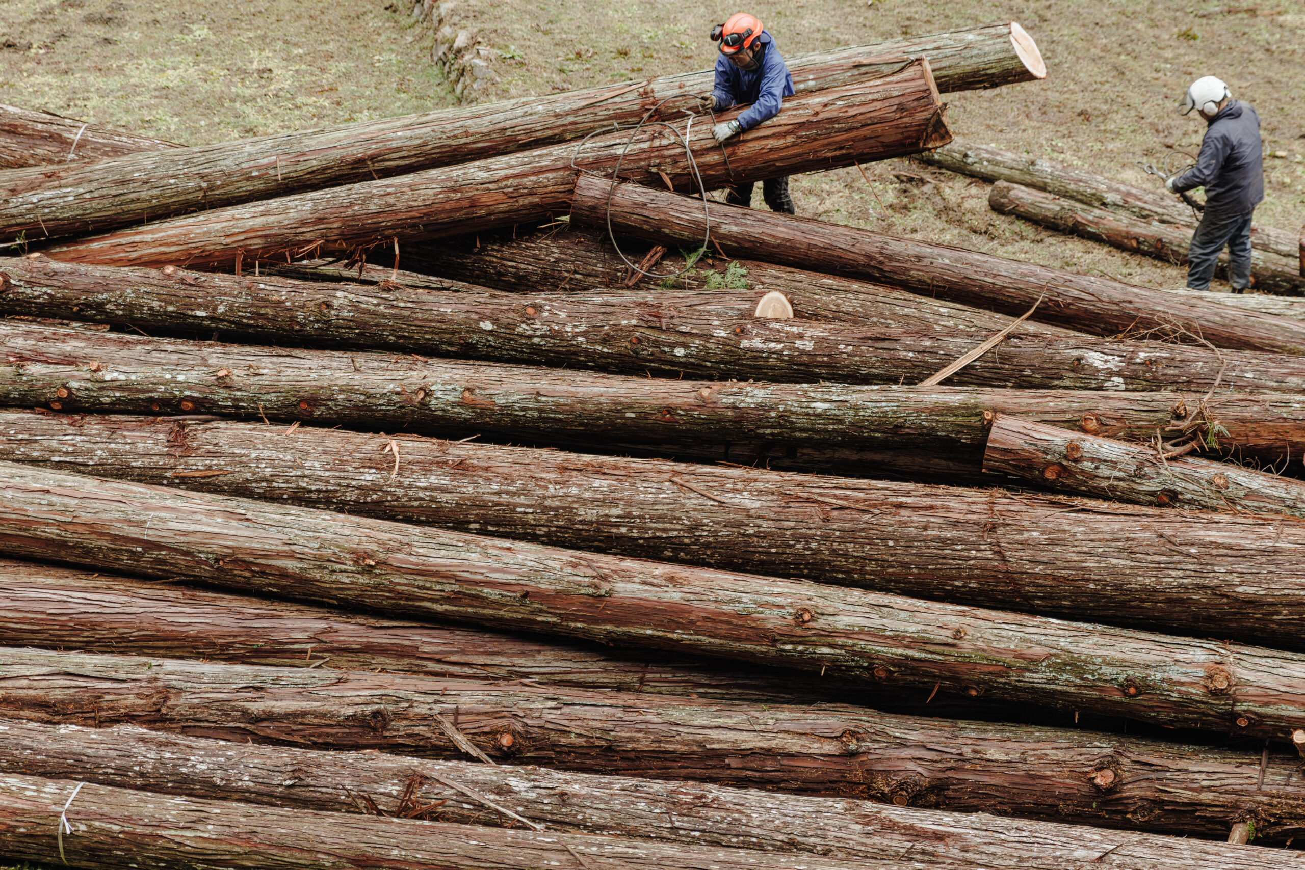 そうですね。大径木と呼ばれる大きい木、長い木、付加価値のついている木をヘリコプター集材で出すのが奈良県の林業の特徴でもあります。ウッドバンクは奈良県銘木協同組合の市場に出す木を扱うことが多いので、このような大径木・銘木と呼ばれる価値のある木を出材することが比較的多いです。初めてヘリコプター集材の現場に入ったときには、とても大きな木を相手に熟練の職人たちが仕事をしているのを見て圧倒されました。今では、大きな木を相手に仕事をするということもやりがいの一つに繋がっています。
