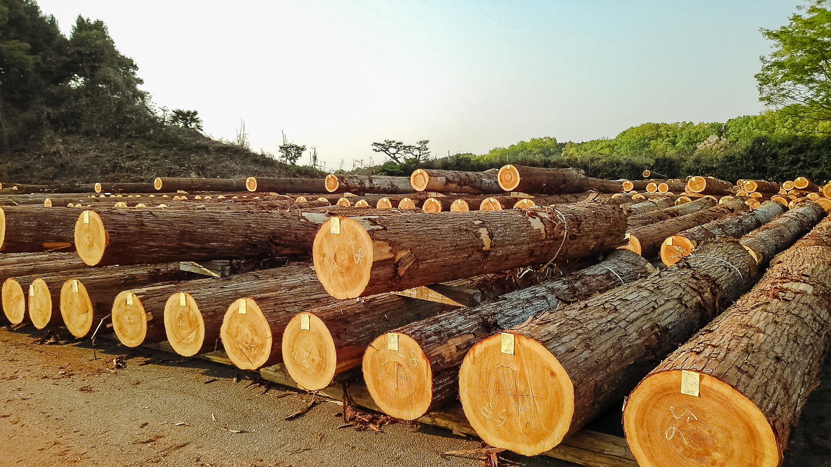 撮影当日も、たった数十分で大量の木材が土場に運ばれてくる。