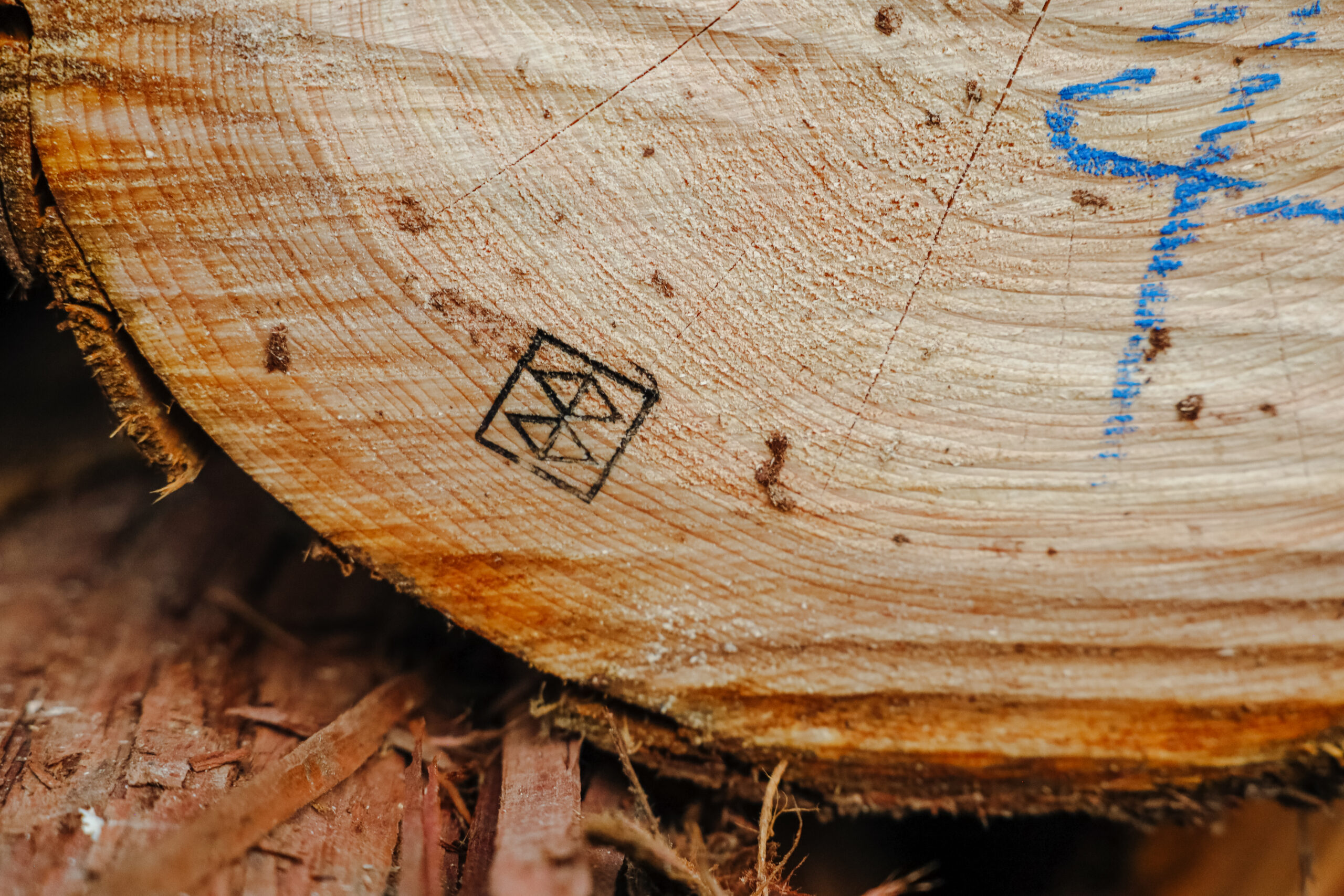 ウッドバンクの木材には刻印が押されている。