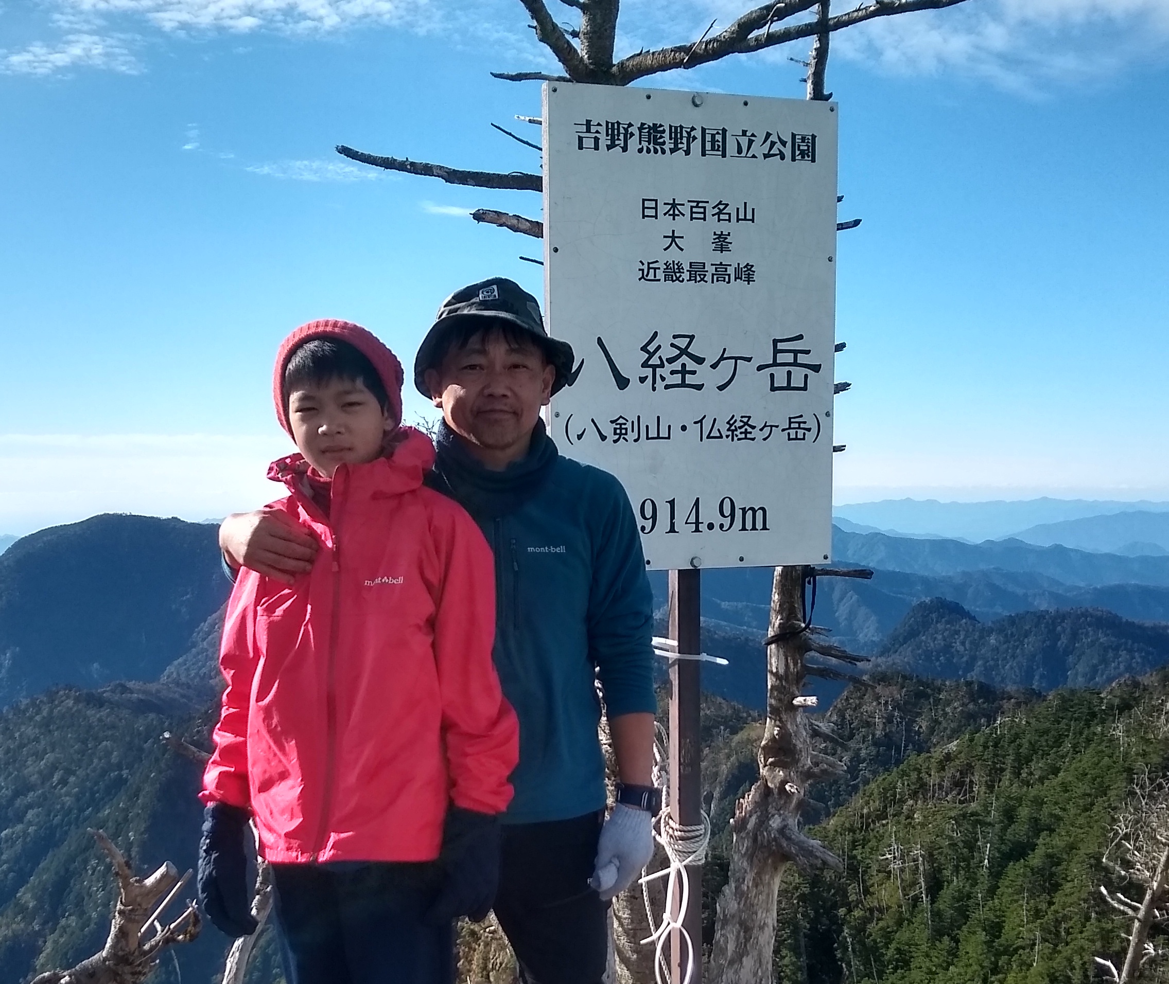 休日はお子さんと山登りを楽しむ。八経ヶ岳:標高1,915m。