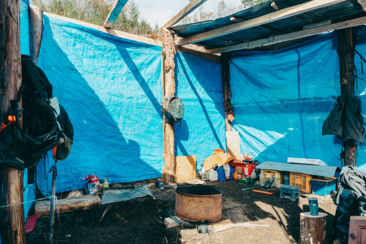 長期で関わる現場では即席の休憩基地を作ることもある。