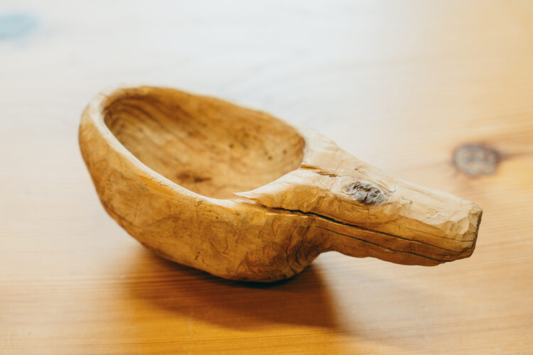 薪生産をする以前に作ったククサというフィンランドやスカンジナビア半島の伝統的な木製カップ。