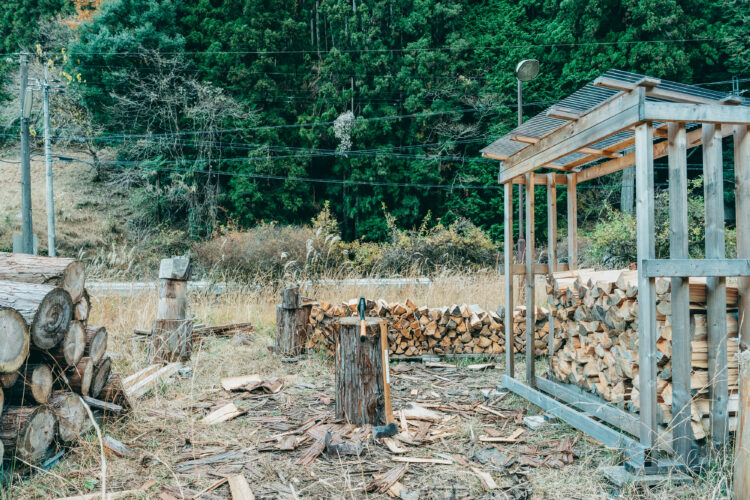 村の一角を借りて、薪を生産する場所として活用している。