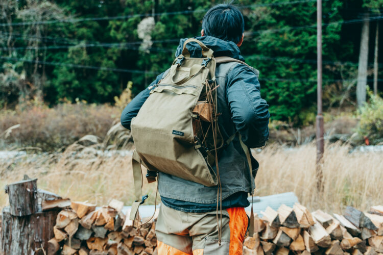 薪を背負って運べる、ファイヤーサイド社とモンベルとの共同開発リュック。