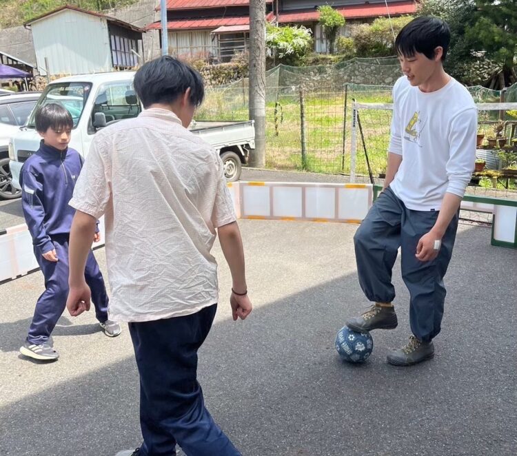 黒滝SC(スポーツクラブ)というサッカーチームで、よくサッカーをしています。森林組合の人たちも何人か参加していますよ。それと筋トレですね。休日という訳ではなく、仕事終わりに組合の人と懸垂をしたり(笑)。大きな木を扱う仕事なので体力が必要なんです。