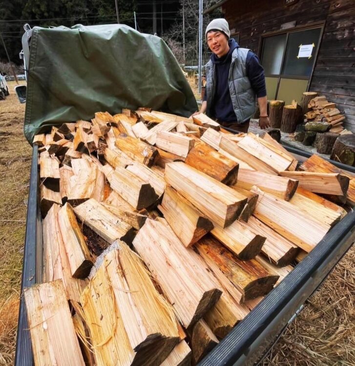 薪作りをしていると、岡崎さんが「薪やってる子がいるよ」と知り合いの方に紹介してくれたんです。それをきっかけに様々な分野の方から声がかかるようになりました。ただ、誰にでも販売しているわけではないんです。というのも、道の駅で売っているような薪と比べて乾きが不十分で割高ではあるのですが、資源を活用するというぼくの活動を理解してくださる方に販売しています。