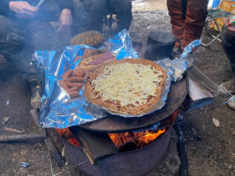 焚き火でコーヒーを淹れたり、イノシシ鍋を持ってきてくれる人がいたり、今日は趣向を変えてピザを焼こう!となったり。一度燻製を作ろうとして大失敗しました(笑)。火をつけることはもちろん、ヘンリーに色々なテクニックを教えてもらいました。ファイヤースティックを使って、ライターがなくても火をつけられるんです。みんな本当にクリエイティブなんです。