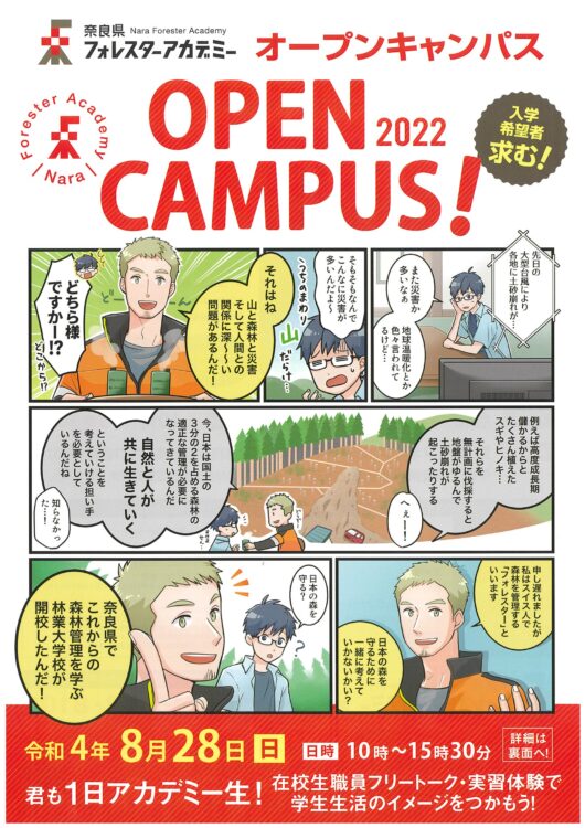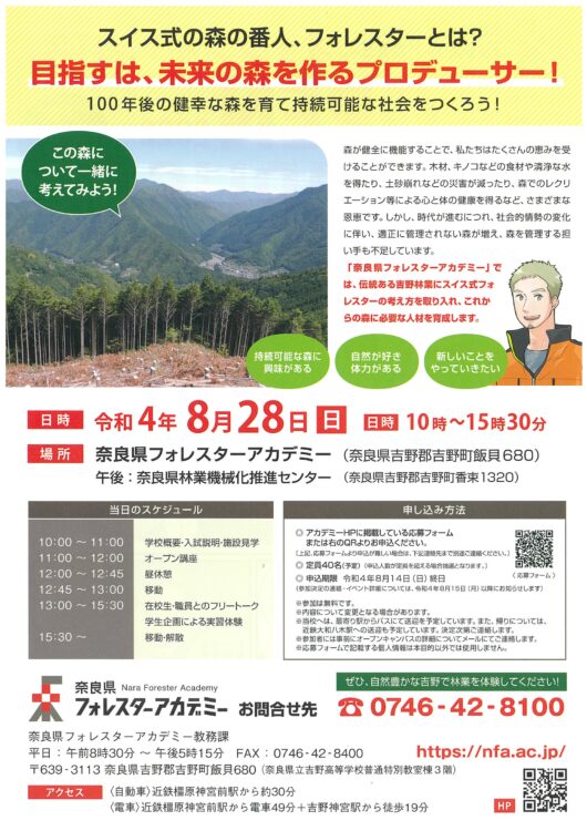 奈良県フォレスターアカデミーが令和4年度オープンキャンパスを開催します。