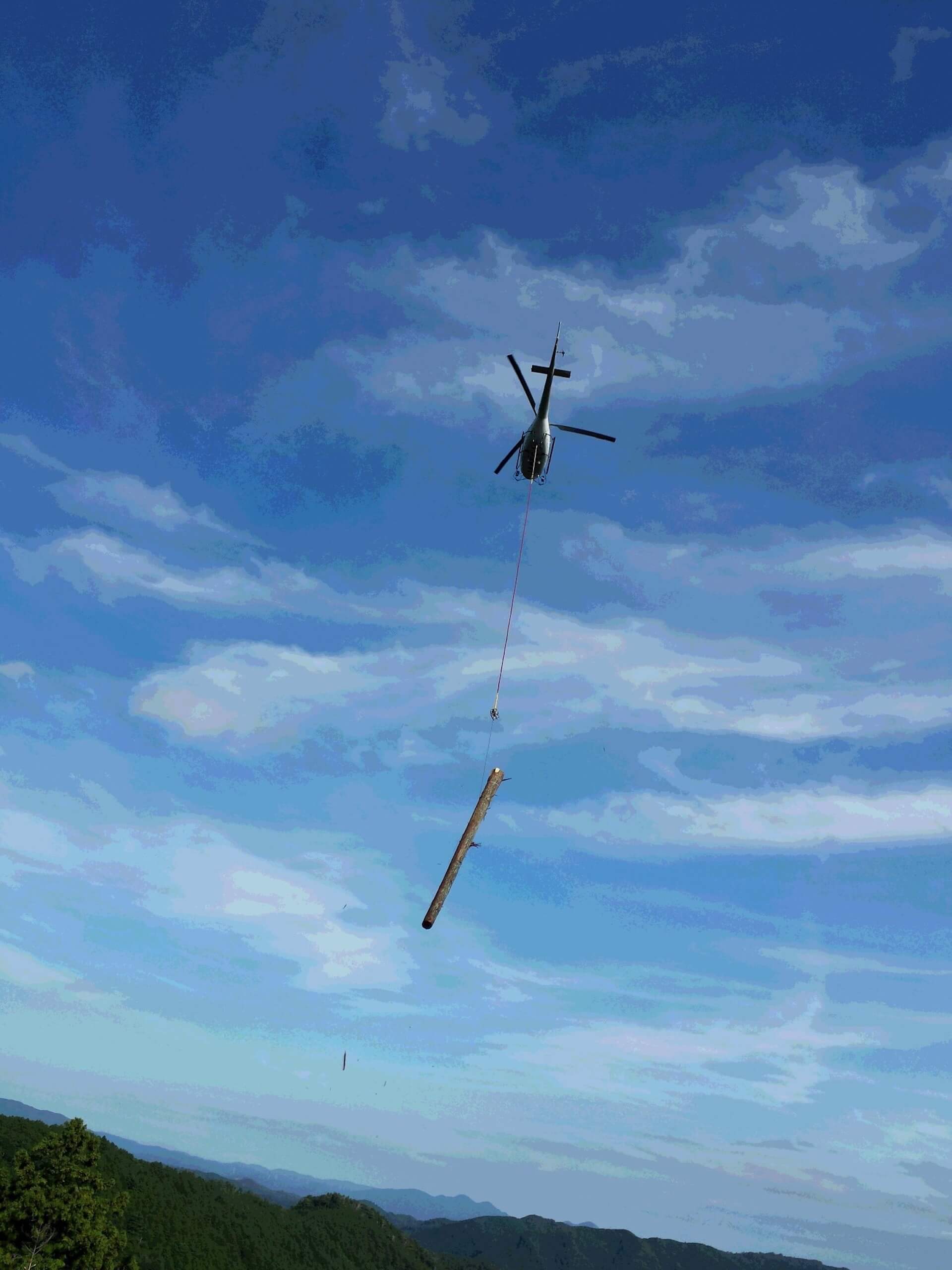 あと、ヘリコプター集材は他事業体にはあまりないと思いますが、ヘリコプターの迫力・能力またそれによって出材された大径木を実際に目の当たりにされる価値はあります。