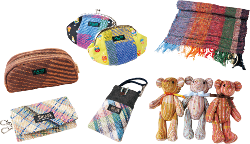 7つの工程を経てようやく完成!定番のポーチやマフラーの他、若い人向けの雑貨などバリエーション豊かなアイテムが生まれる。