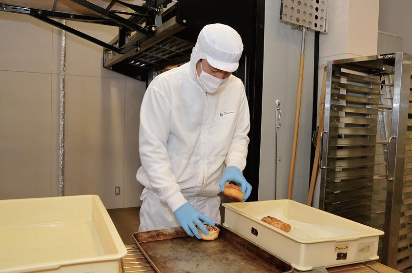 パンの販売スペースには、60~70種類のパンが並ぶ。約半数が米粉を使ったパン。