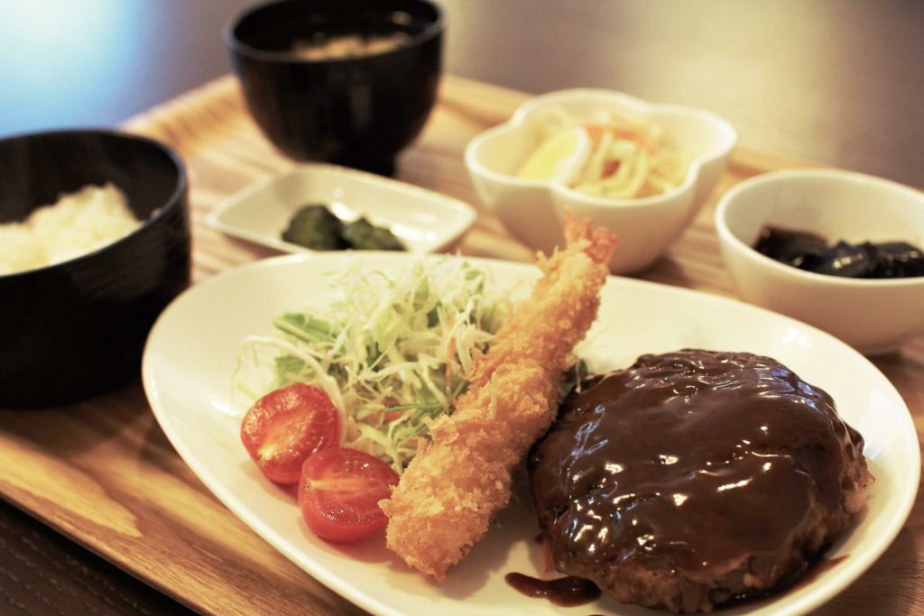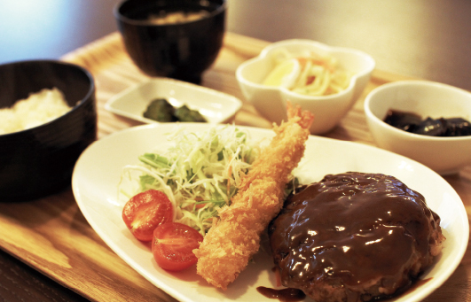 その一角に、「高齢者がなごめるお店を開いてほしい」と、地元の活性化に取り組む団体からの要請を受けて開かれたのがなごみカフェの名前の由来。気取らない居心地の良さと、手ごろな値段でおなか一杯に食べられることで親しまれているこの店の人気メニューは、日替わり定食(700円)のハンバーグ。ふっくらとしてボリュームがあるのが自慢だ。「今日はハンバーグだから」と食べにくる人もある。