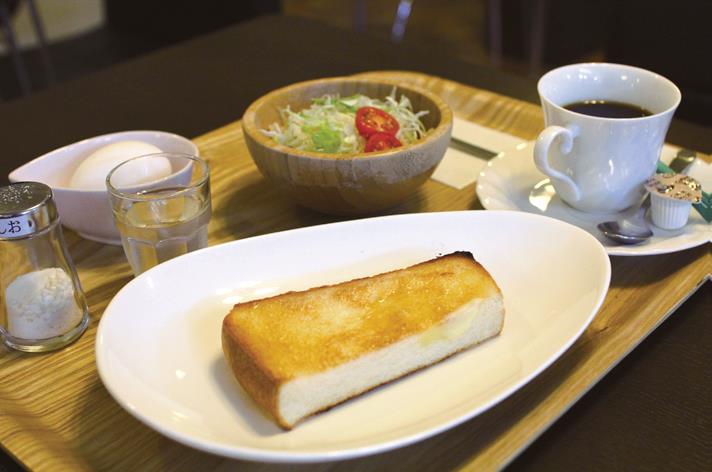 ドリンク1杯の料金でドリンク、トースト、卵、サラダ、食前酢がついているお得なモーニングセットもお店のオススメメニュー。