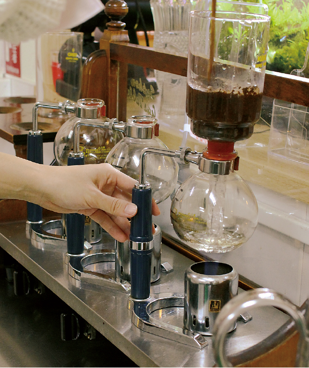 ブレンドコーヒー(400円)は、サイフォンで丁寧に抽出され、味にこだわる人も満足できる。