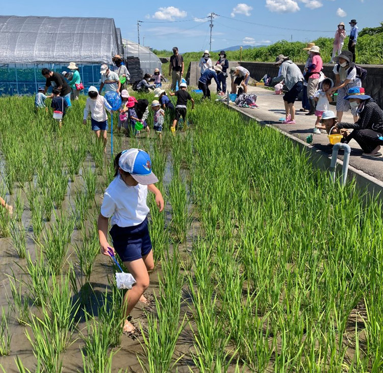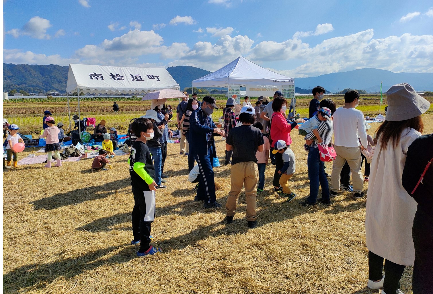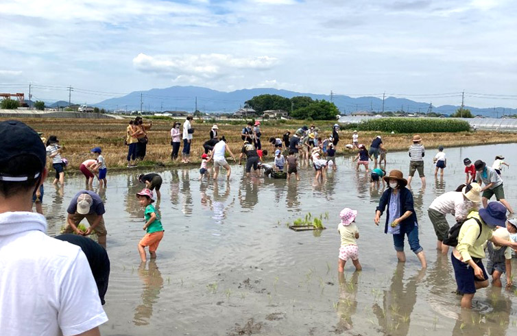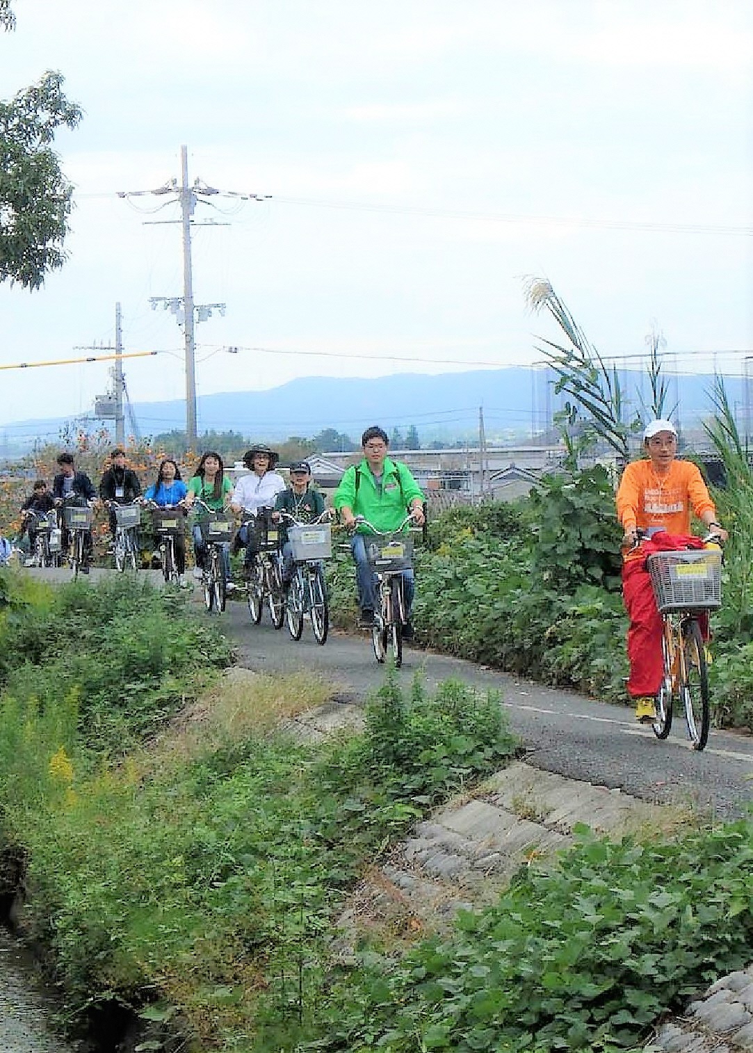 奈良盆地の真ん中に位置する南檜垣地区は、西には弥生時代の「唐古遺跡」、東には卑弥呼の関連が期待される「纒向遺跡」と、古代大和の歴史風土を感じる地です。平成29年、「集落の農地は集落で守る」を合い言葉に、営農組合を中心に、集落が一丸となり、「農」と「風土」を活かしたむらづくりをスタートしました。収穫体験やサイクリングツアー、田んぼで運動会等の都市農村交流イベントの他、まずは地域を明るく楽しくと、川のせせらぎや桜の公園を綺麗に整え、住民が集まる場所と機会づくりにも力をいれています。最近では週1回の青空市も始め、ますますの賑わいです。