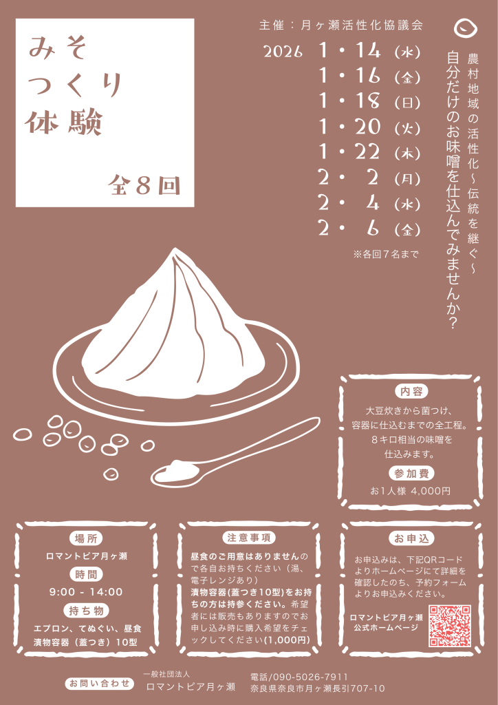 申込 ロマントピア月ヶ瀬公式HP 2026年 みそつくり体験 予約開始