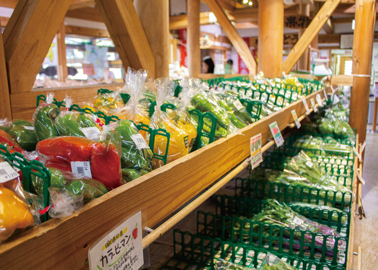 村内に3つの農産物直売所があります。朝から地元の農家の方々が作った旬の野菜や果物などが所狭しと棚に並べられ、村内外からたくさんの人が買いに訪れます。