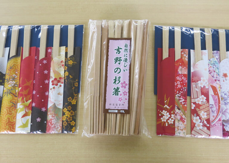 薬品を使わず、吉野杉の端材で作る割り箸です。製作過程で出る木屑も、製品を乾かす燃料に活用。山の恵みをすべて活かすお箸です。