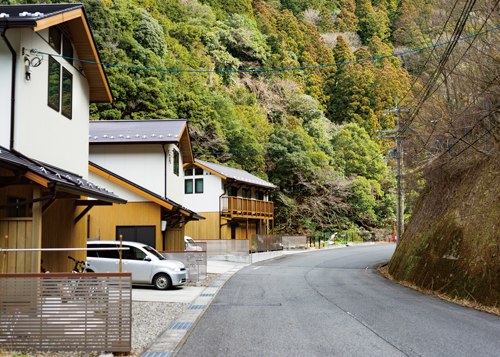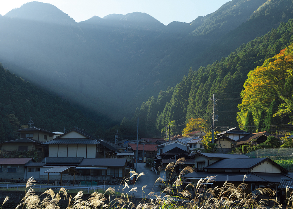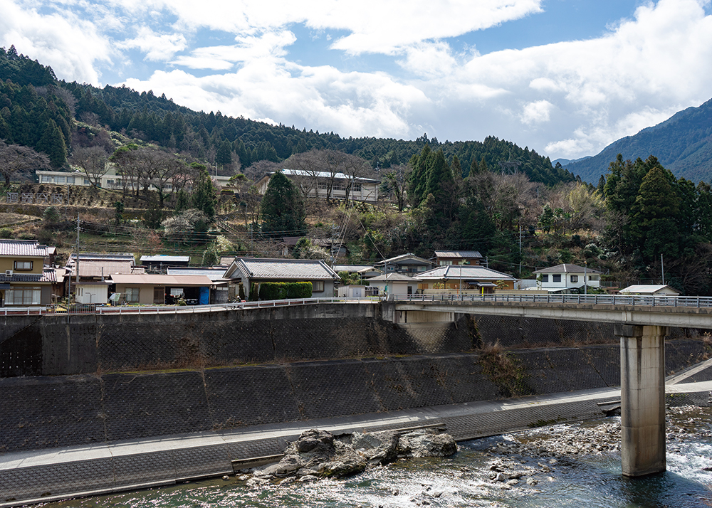 土地面積の約95%が山林で、国道沿いの山裾に位置する集落と、国道から山に入った土地に点在するように集落があります。水源地の村として、水の恵みを下流に届けるための事業を実施。また、日用品の移動販売、高齢者の見守り、集落の点検などを行う社団法人を立ち上げ、山間地域での暮らしを支える活動も行われています。