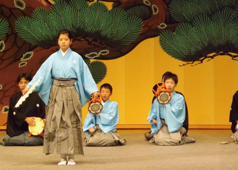 桧垣本地区には「猿楽」の一座があり、吉野を中心に活躍していた歴史があります。町は、「ちびっこ能楽体験」を行うなど、「桧垣本猿楽」を伝えていく事業を展開しています。