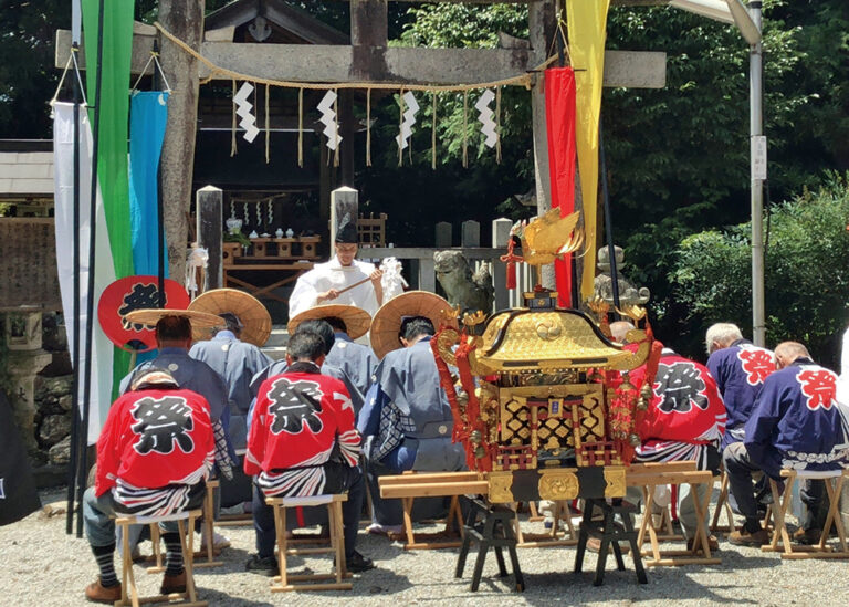 毎年7月に行われる、「下渕八幡神社」境内にある水神社の例祭。五穀豊穣を祈りながら、ご神体を祀った神輿と子どもたちが引く「子ども神輿」が、地区内を練り歩きます。