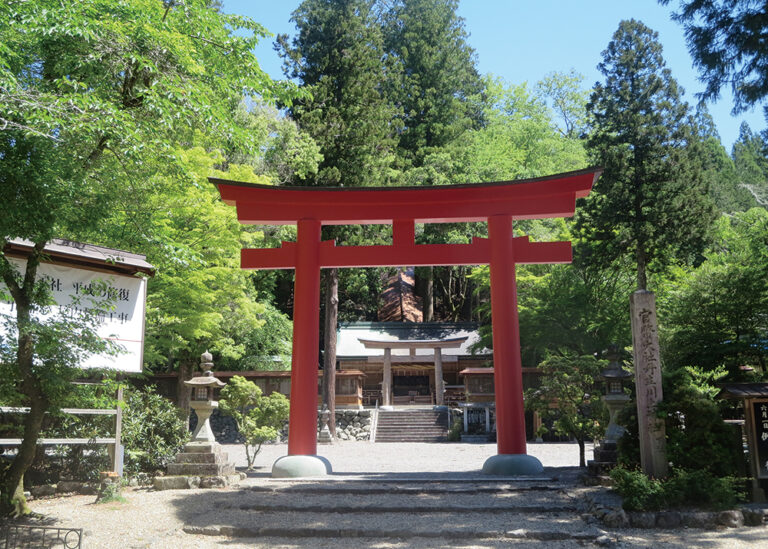 675年、天武天皇期に創建。水神を祀る神社としては日本さいことされる延喜式内社です。丹生山山頂の本殿に続く木製75段の階段は、6月の例祭の日のみ、一般参拝者も登ることができます。