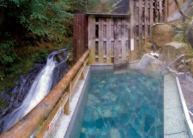 十津川村には泉質の異なる3つの天然温泉が湧き出ており、全温泉が、加温・加水・循環を行わない源泉かけ流し。その景観や優れた効能から、「国民保養温泉地」にも指定されています。