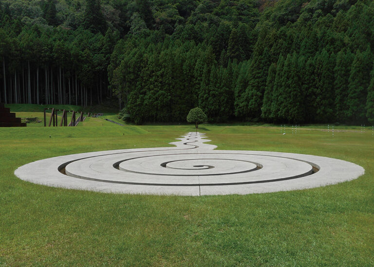村出身の彫刻家・井上武吉氏の着想をもとに、環境造形家のダニ・カラヴァン氏が手掛けた公園。太陽の光・木・草・水・風などを素材とし、周辺環境と調和した空間全体が彫刻作品となっています。