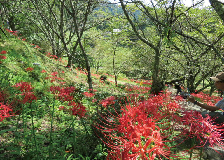平安時代、空海の高弟・堅恵によって創建。唐から茶種と茶臼を持ち帰って寺内に茶園をつくったことから、大和茶の発祥地としても知られます。樹齢900年を超える千年桜や秋の彼岸花も人気です。