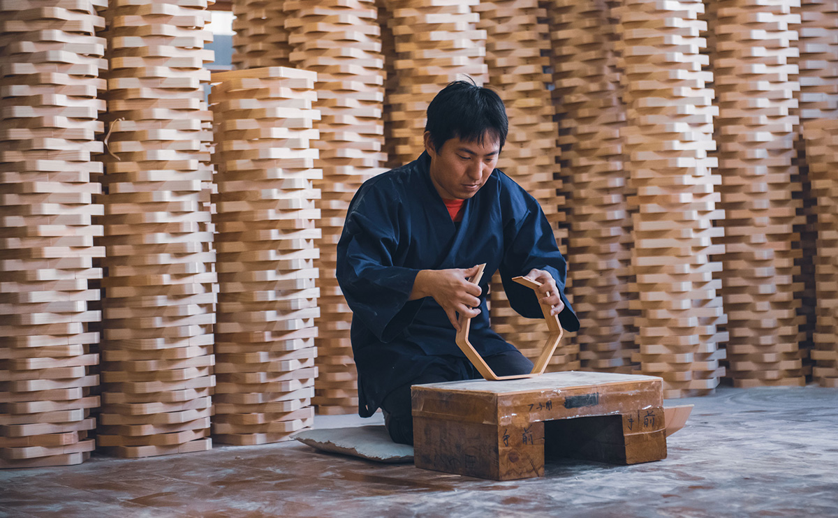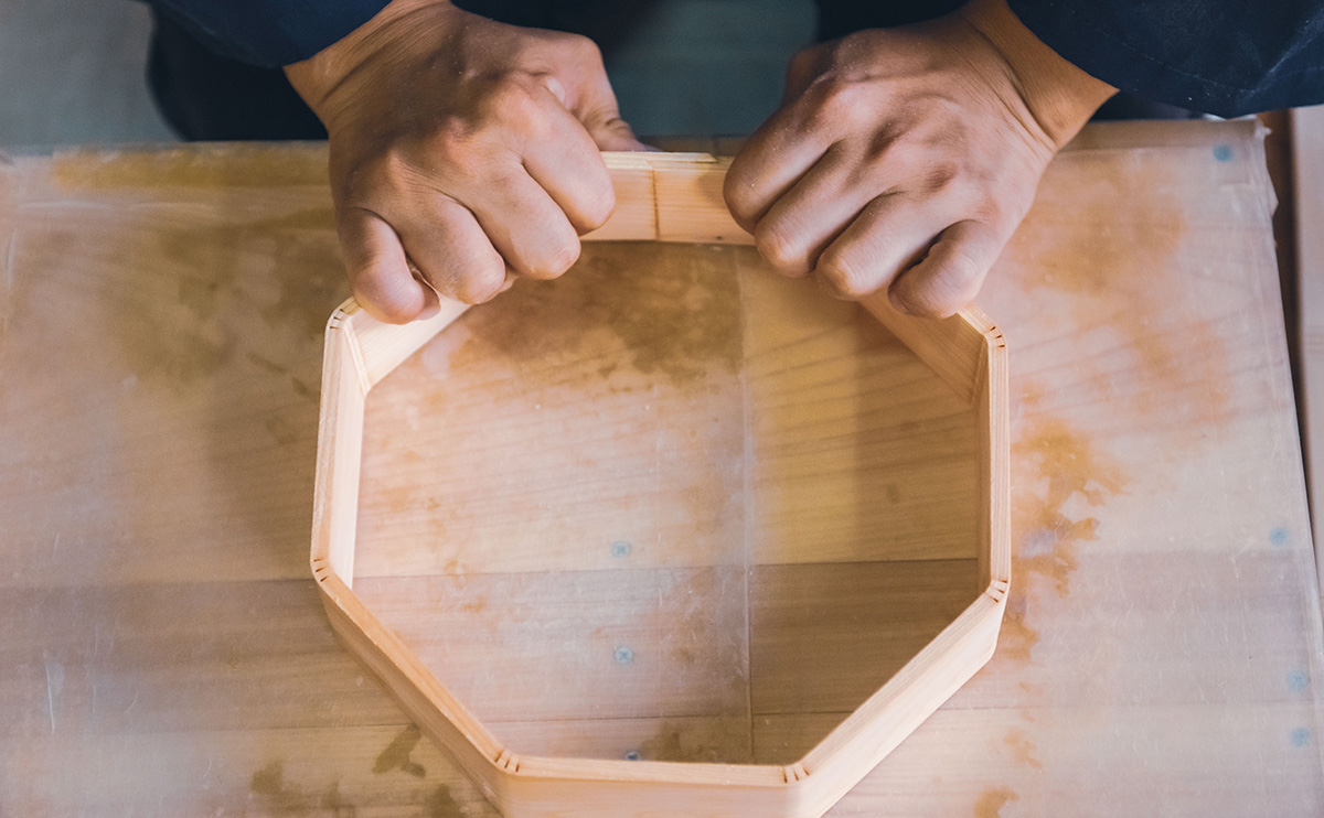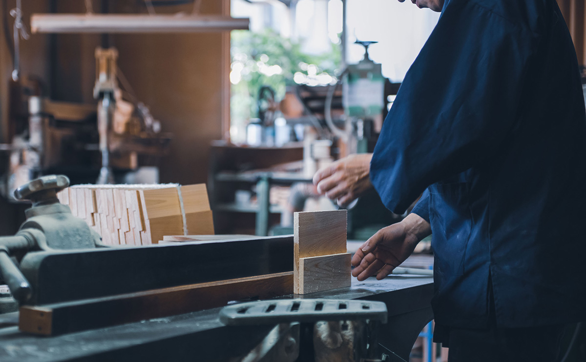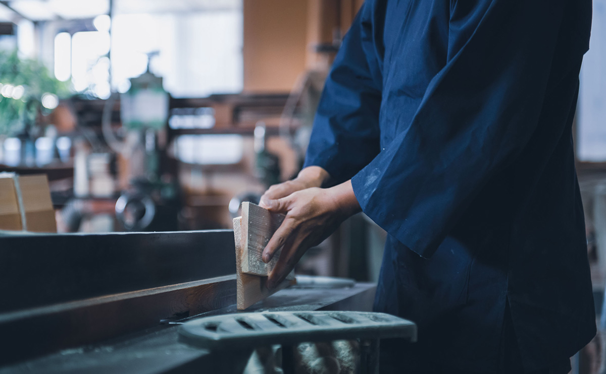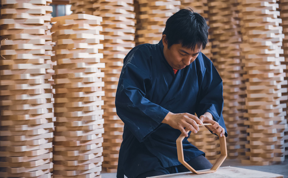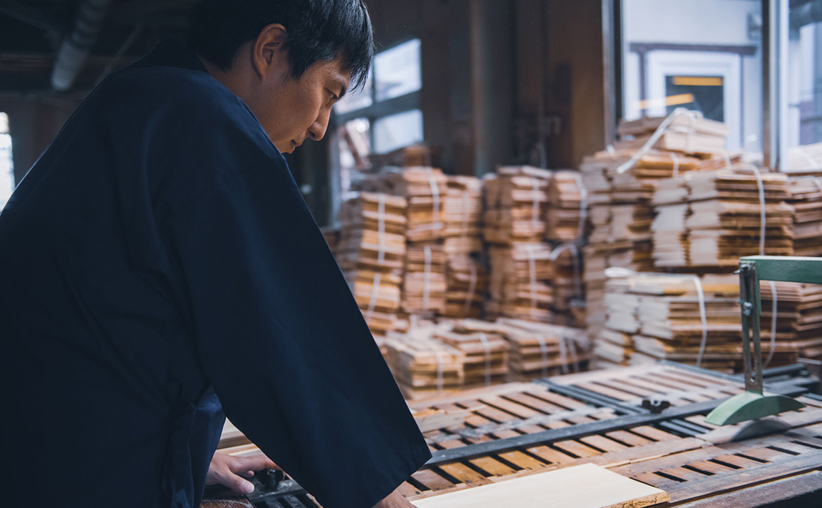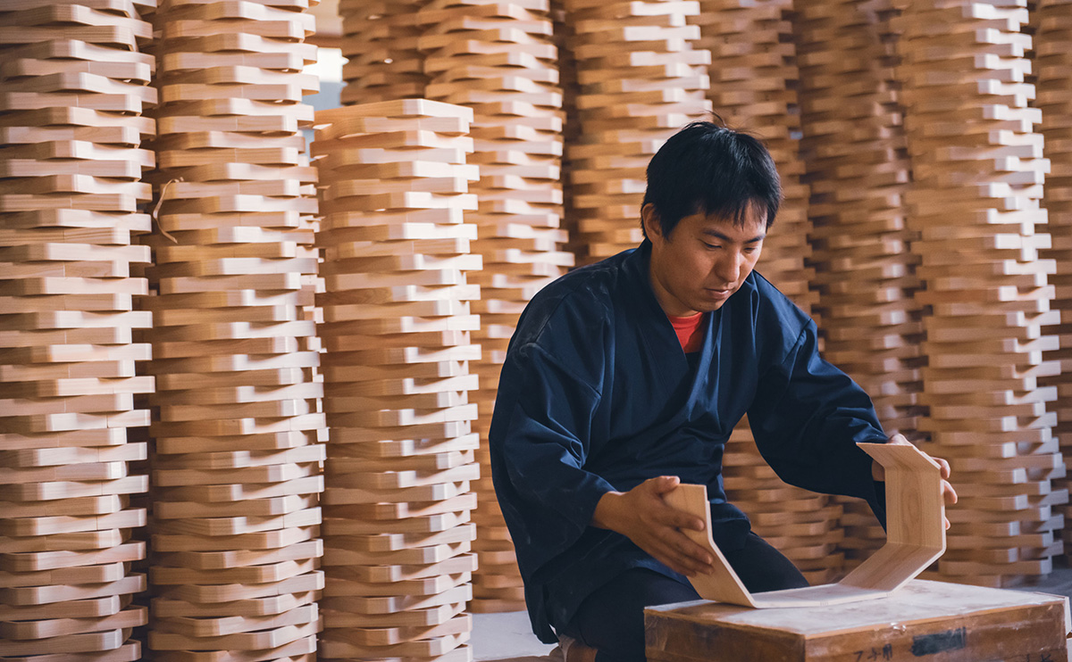 吉谷木工所は奈良県吉野郡下市町にあります。下市町は吉野郡の北西に位置し、古くから吉野山地と大和平野を結ぶ交通の要衝、市場町として栄えてきました。全体の約80%を緑の山々が占め、澄み切った清流である秋野川、丹生川に彩られた自然豊かな土地です。古代から続く長い歴史に育まれてきた地にある吉谷木工所は、伝統工芸である「三宝」を守り続けながら、日常に新しい日本のしつらいを生み出しています。
