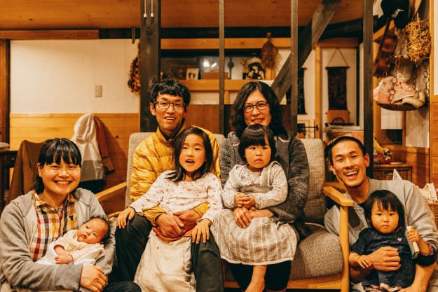 小野家は、神奈川県出身の正晴さん、大阪府出身の晴美さんと2人の娘さんの4人家族。結婚後、世界のローカルな暮らしを訪ねて回り、2017年に下北山村へ移住。夫婦共に地域おこし協力隊として活動後、2018年にゲストハウス「山の家 晴々-haru∞baru-」を開業。2020年にはセルフビルドで建築した「マキビトcafe」をオープン。「オノ暮らし」の屋号でパーマカルチャーを軸にした生活のデザインと発信に取り組んでいる。