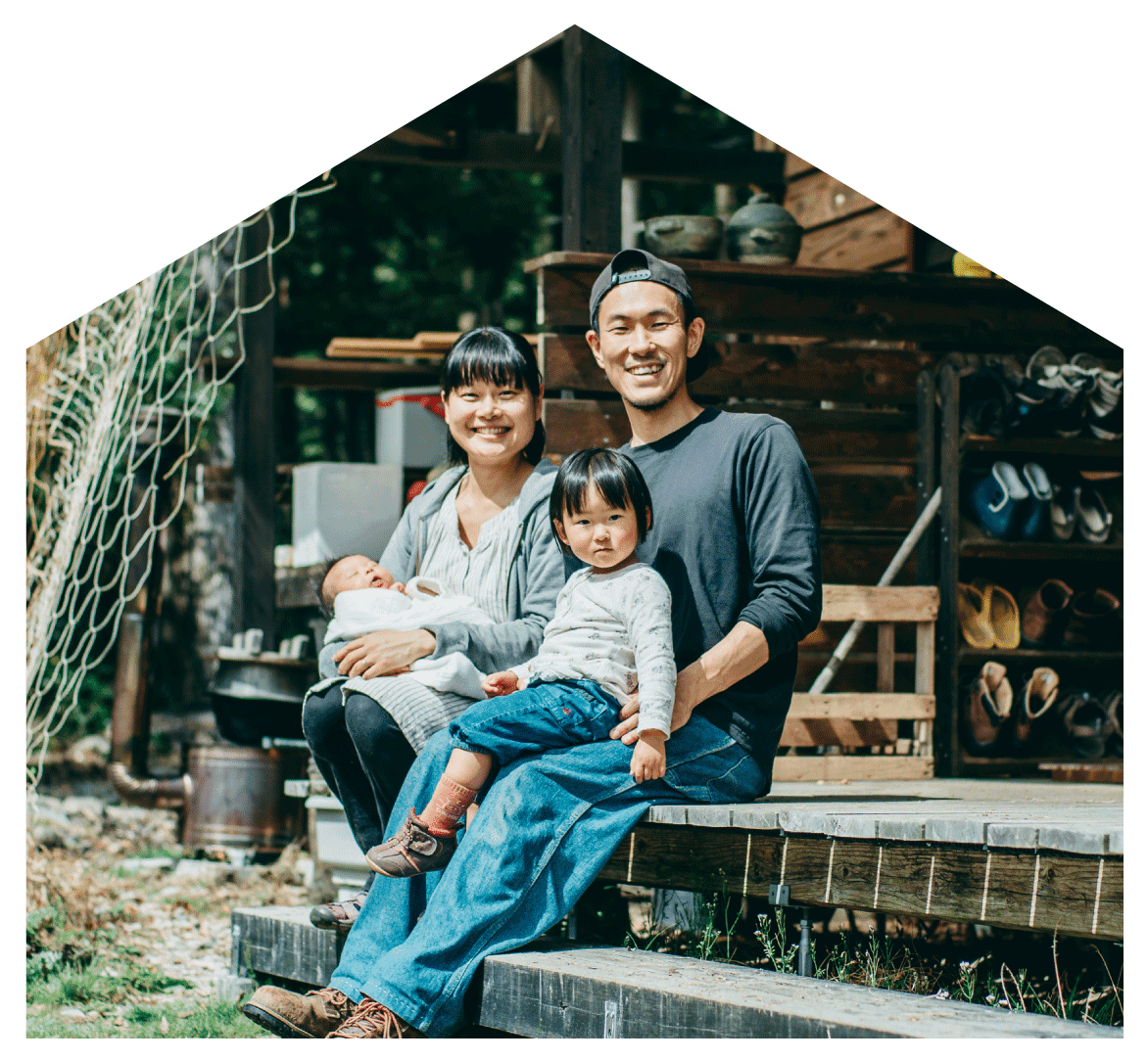 東京都出身で看護師として働く潔樹さんと、広島県出身で料理を作るのが好きな詠子さんは、現在京都府京都市で2人のお子さんと4人暮らし。2015年に出会ったふたりは、よりオーガニックな農ある暮らしの実践を目指し、三重県にある自然農塾で畑づくりを学ぶなどしながら、自然豊かな移住先を探している。