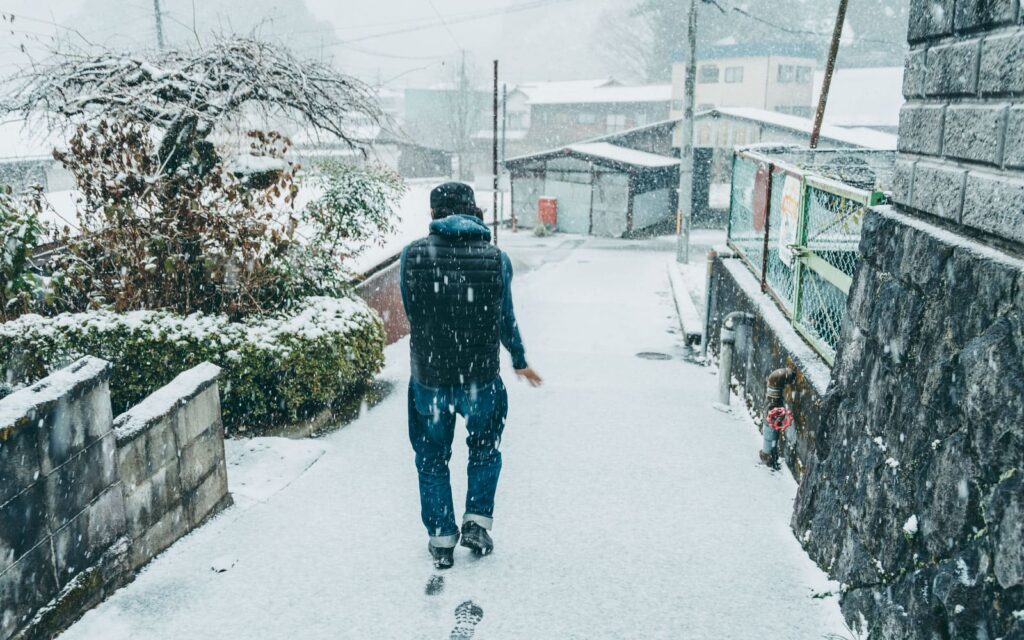 挨拶を交わす間にも、肩や髪に雪が積もります。移動の疲れを癒し暖を取るため、まずはホスト役である畠中さんのご自宅で一息つくことに。