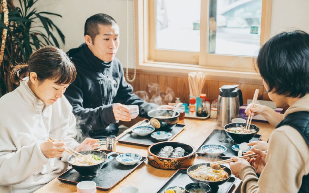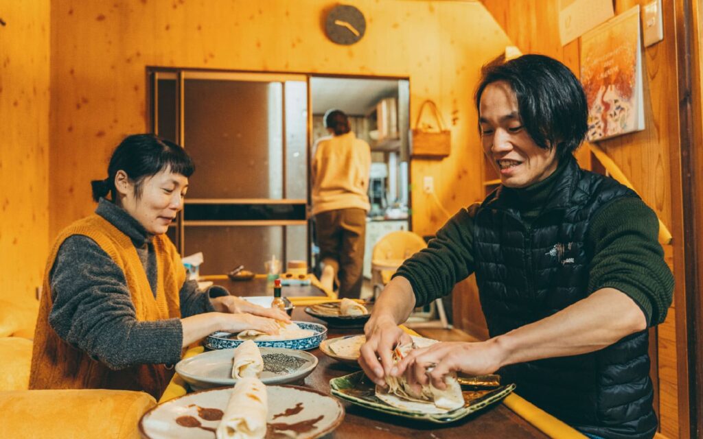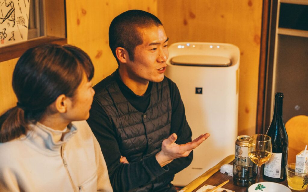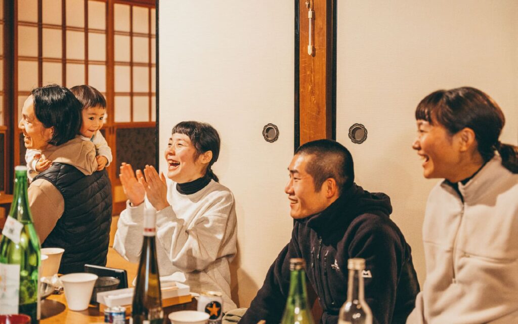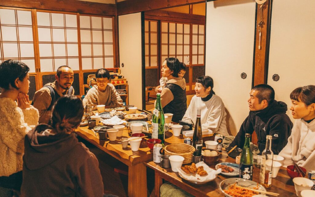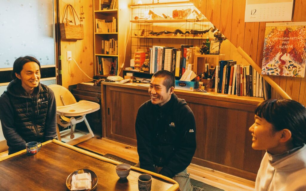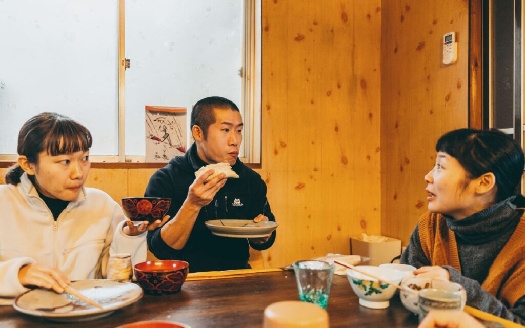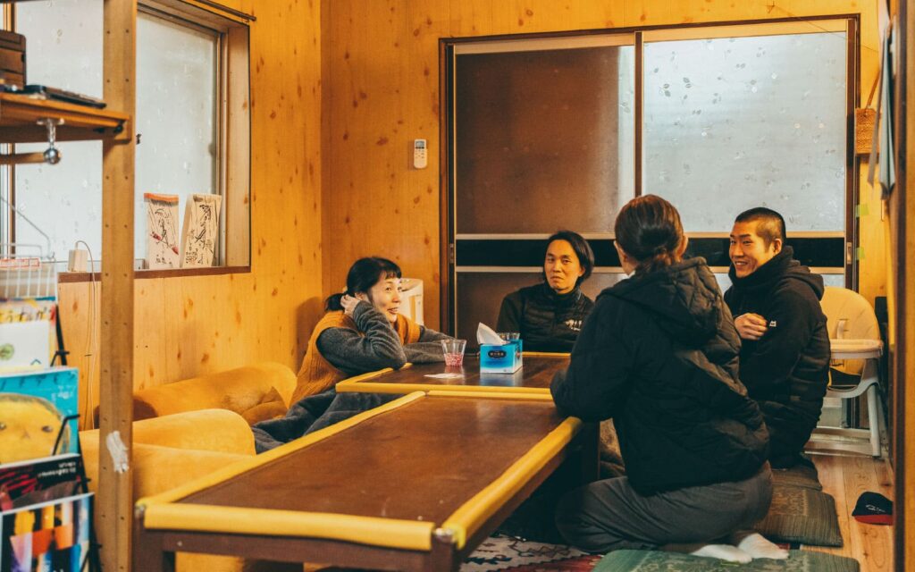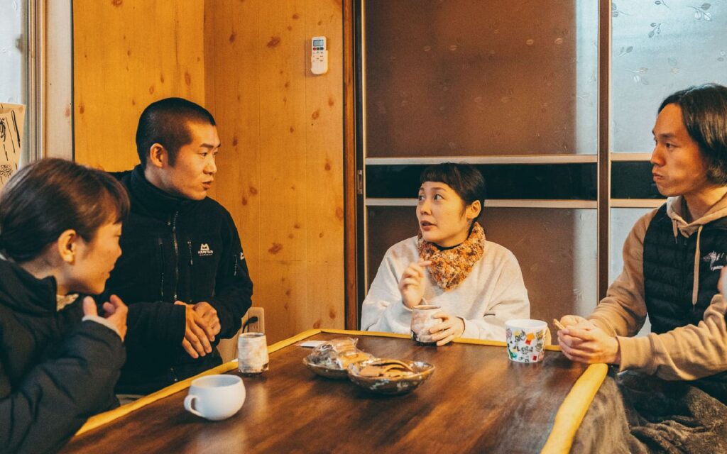 この日が初対面となる四人ですが、まずはこたつを囲んで改めて自己紹介。畠中夫妻が、簡単に地域のあらましや見どころなどを教えてくれます。